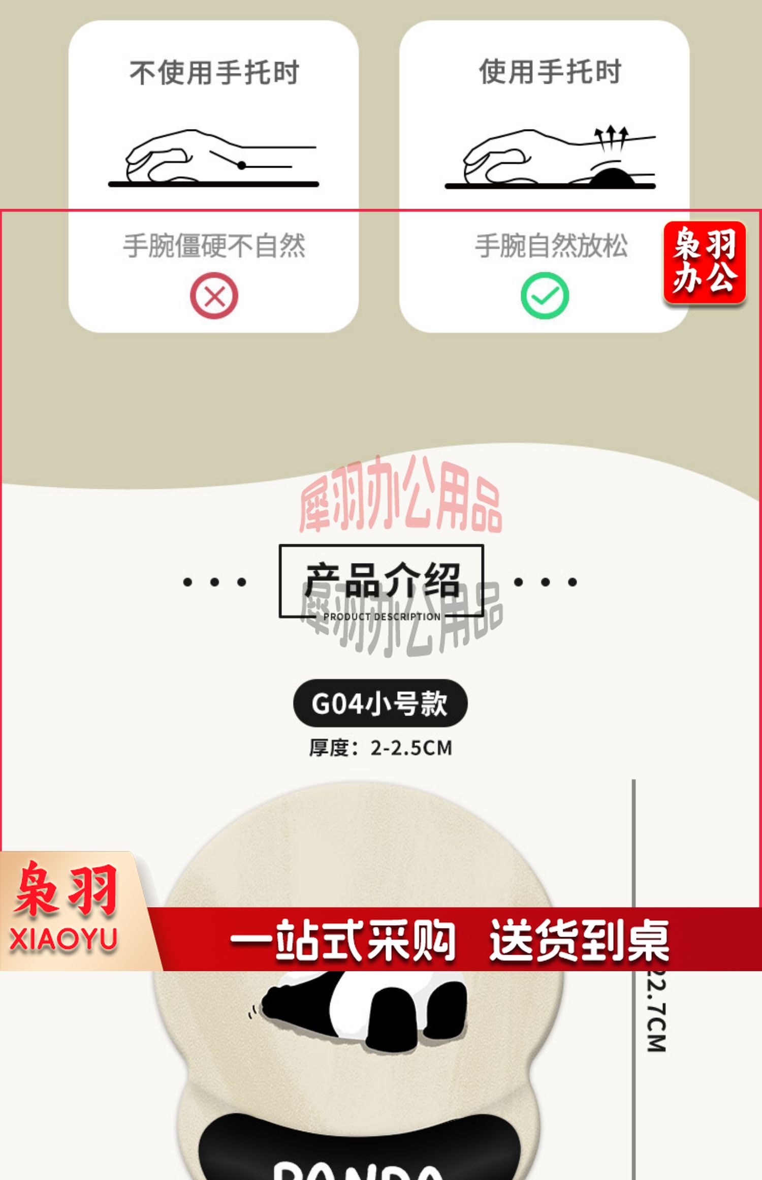 护腕鼠标垫手腕垫可爱熊猫防滑硅胶记忆棉办公笔记本电脑键盘手托