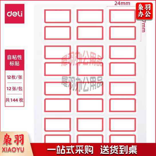 得力(deli) 24*27mm红框不干胶标签贴纸 7193