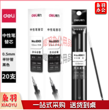 得力 6901 中性笔芯0.5mm 20支/盒 黑