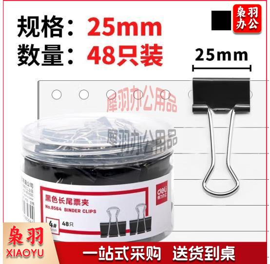 得力 48只 25mm黑色长尾夹票夹 金属燕尾夹 票据文件夹子中号8564