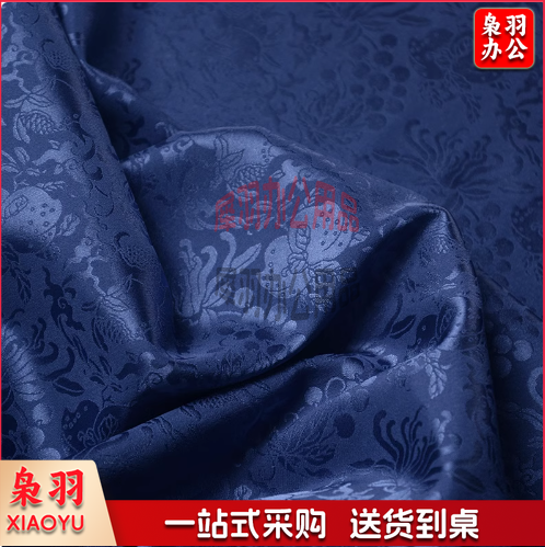 三多暗纹提花缎微弹明制袄裙马甲披风汉服布面料 蓝宝石 1件=半米