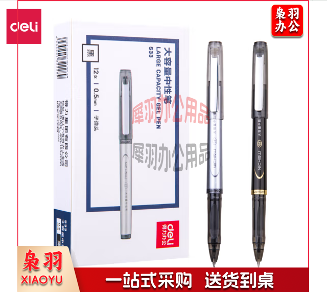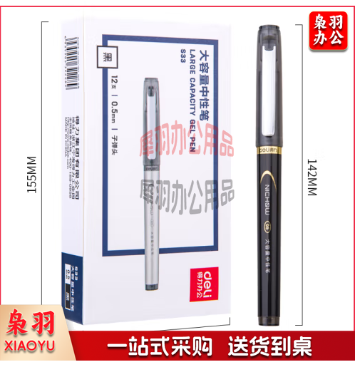 黑色碳素笔 得力(deli)0.5mm黑色碳素大容量中性笔 办公用品 水笔签字笔12支/盒