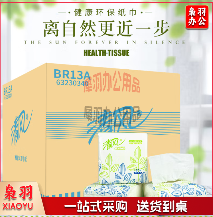 清风抽纸130抽96包抽纸巾正方形方抽餐巾纸酒店餐饮双层面巾纸BR13A(箱)ZUDY02281016052030