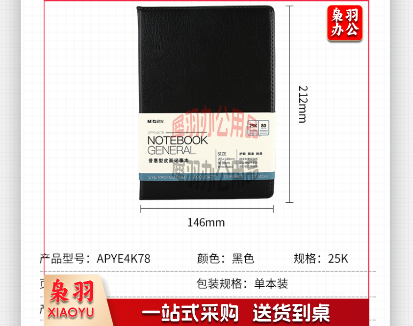 晨光 M&G 普惠型皮面记事本 APYE4K78 25K (黑色) 80页