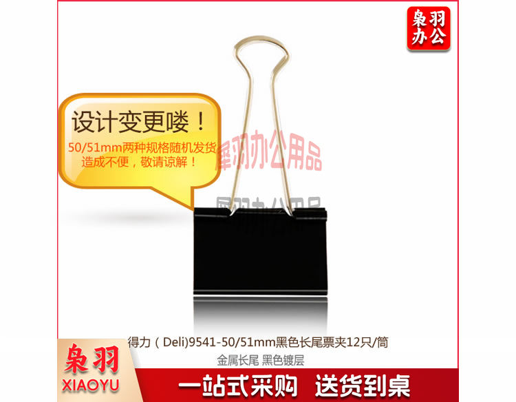 得力(deli)9541 1#黑色长尾夹/长尾票夹50/51mm12只/盒5盒装