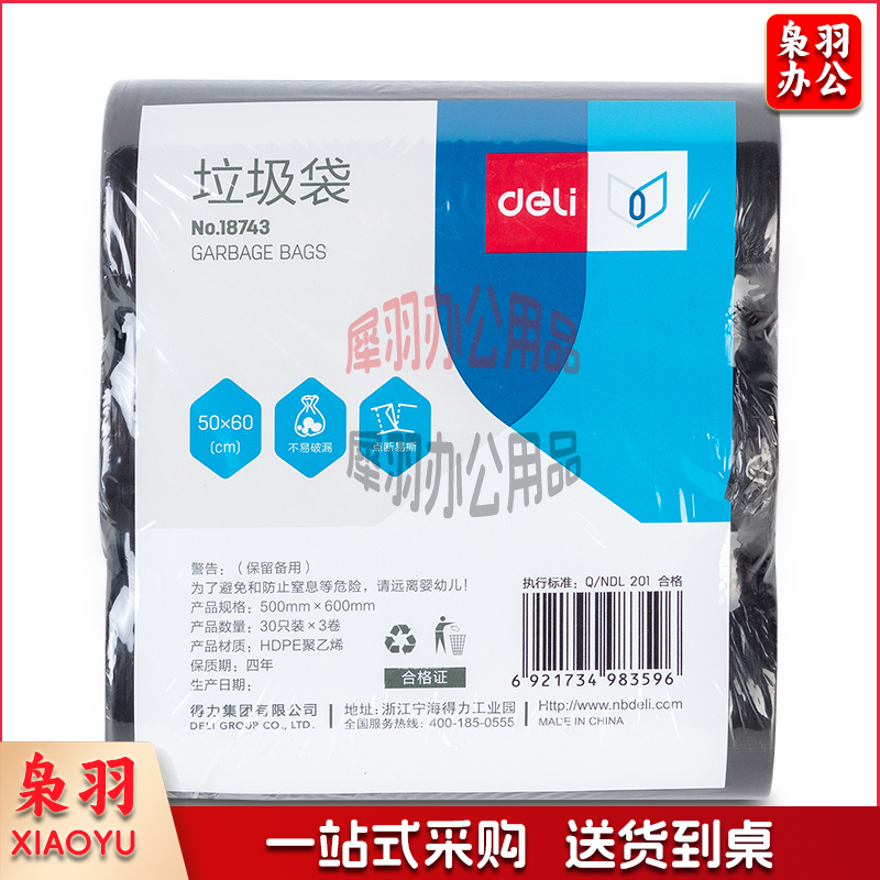 得力18743垃圾袋(黑色)(50*60)(3卷/包)
