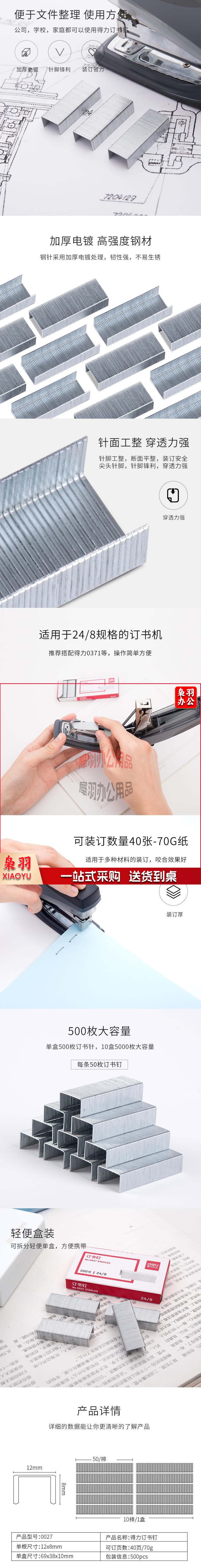 得力0027订书钉(银色)(500枚/盒)(单位:盒)