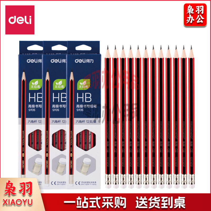 得力S935-HB高级书写铅笔(红色)(12支/盒)