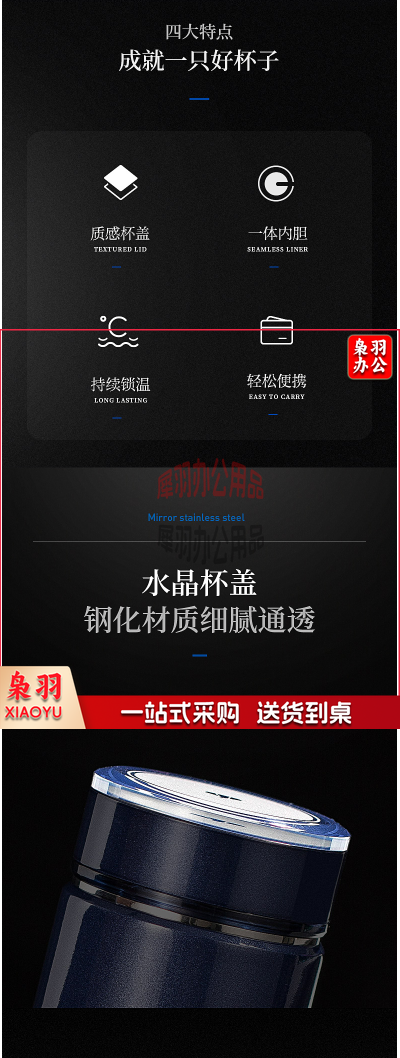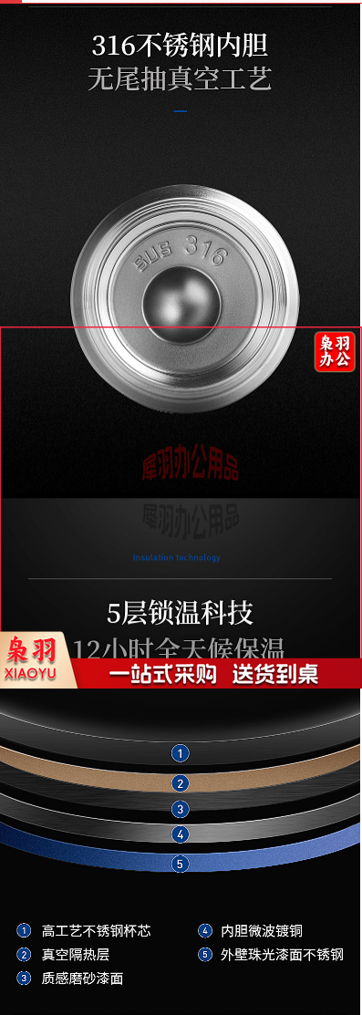 万象(WANXIANG)保温杯男女士杯子316L不锈钢真空水杯商务办公大容量茶杯500ML 青灰色