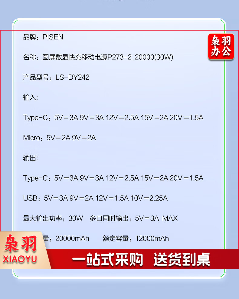 品胜20000毫安30W双向快充充电宝大容量移动电源27WPD20W数显便携适用苹果16华为mate xt小米
