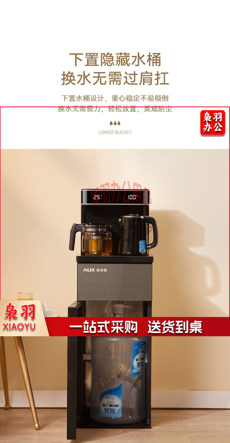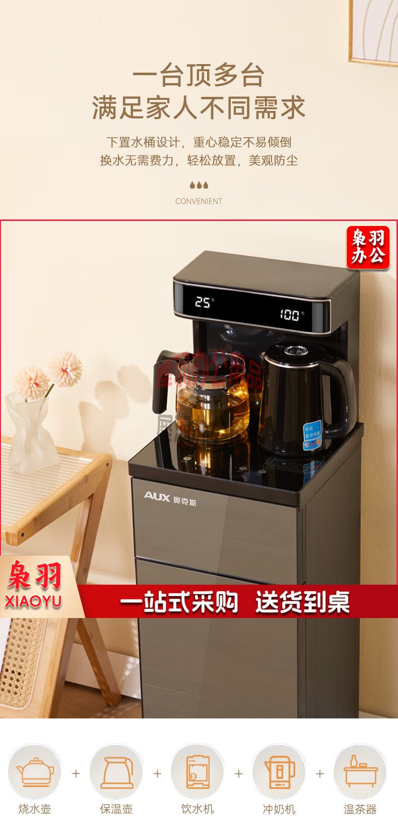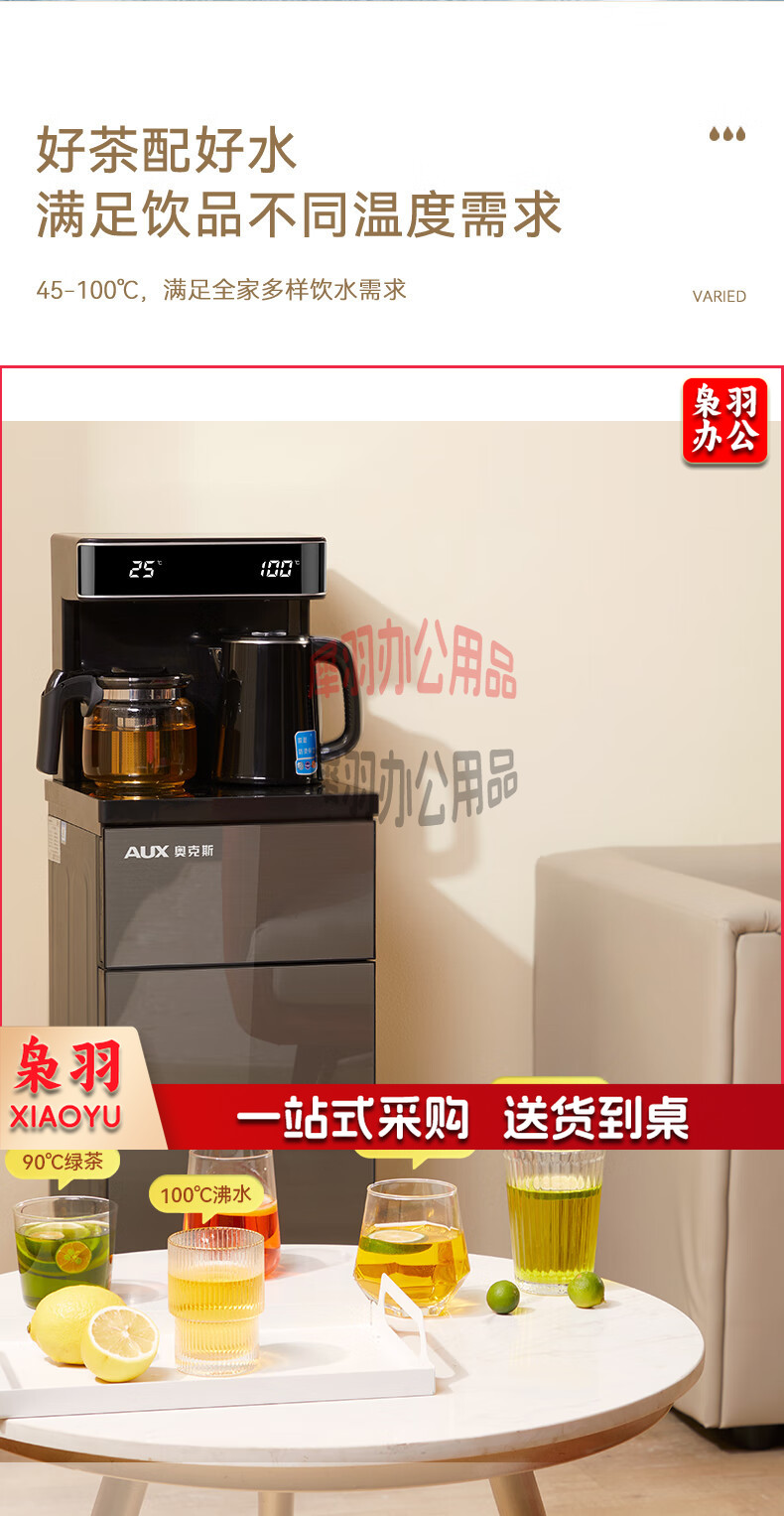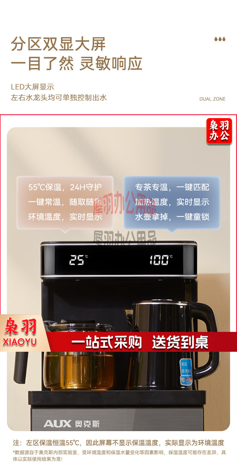 奥克斯(AUX)家用茶吧机大屏下置水桶饮水机 双温双显双出水口 立式智能遥控茶吧机温热款YCB-58