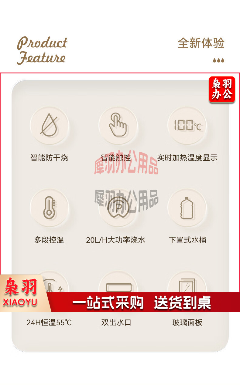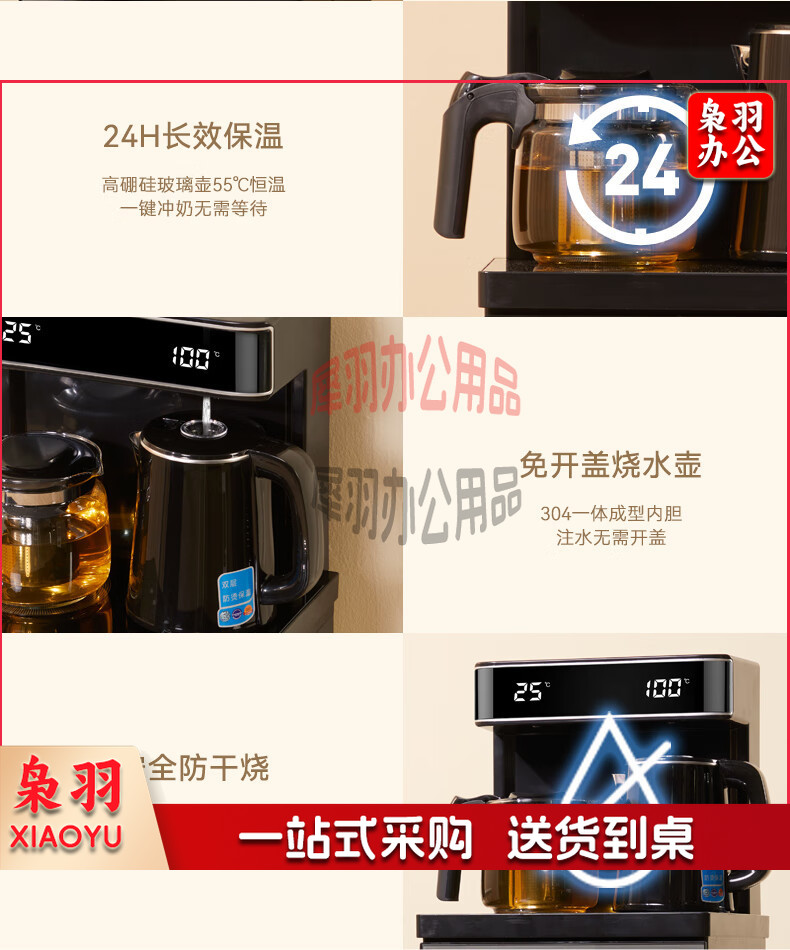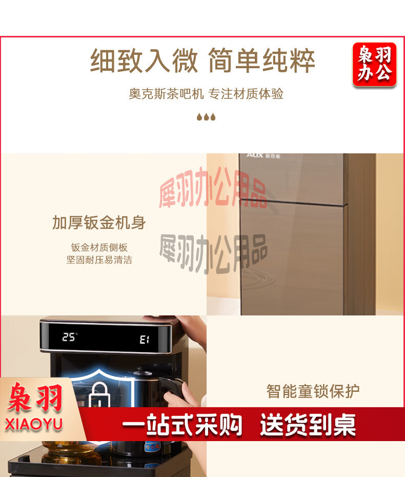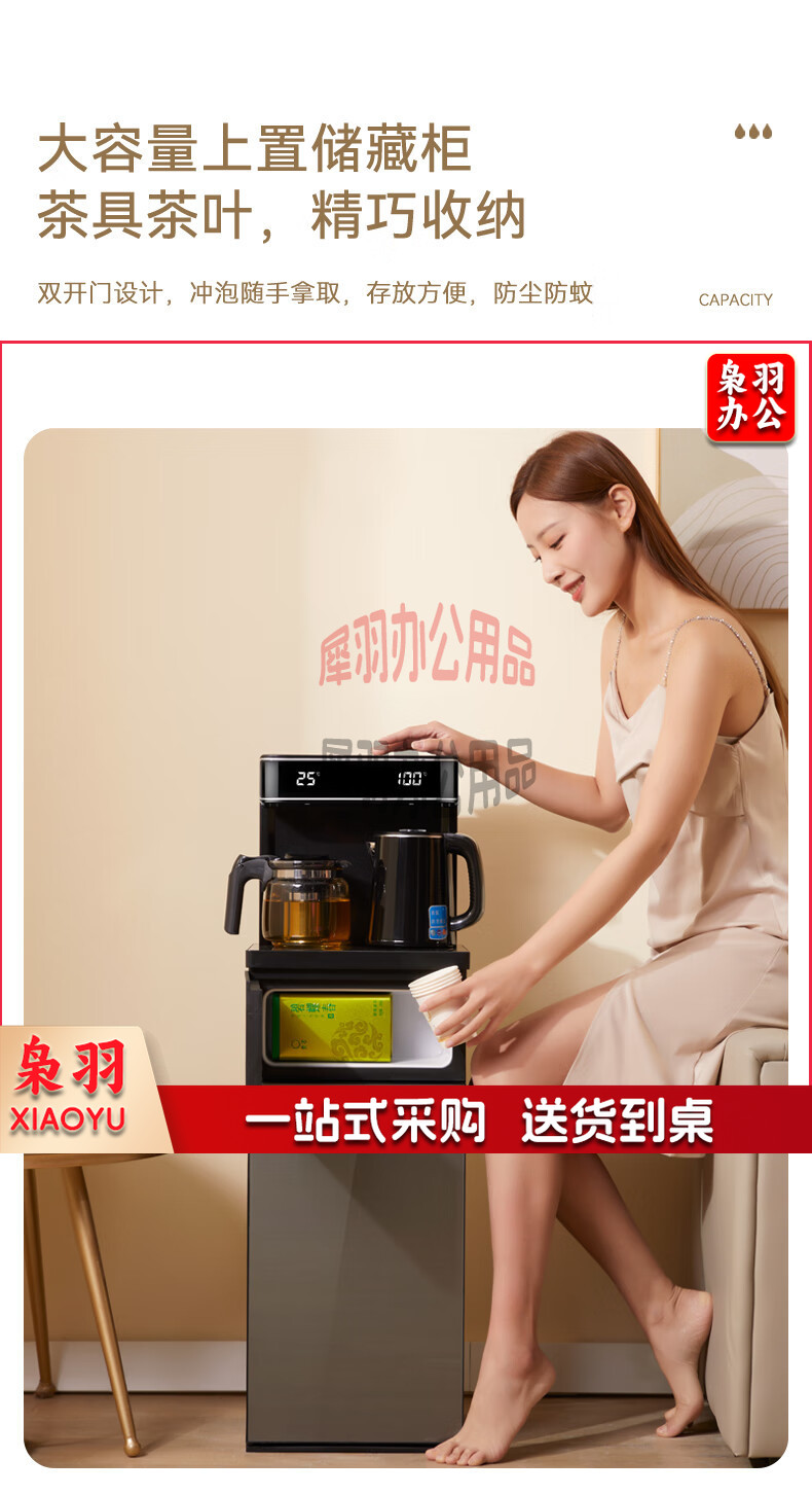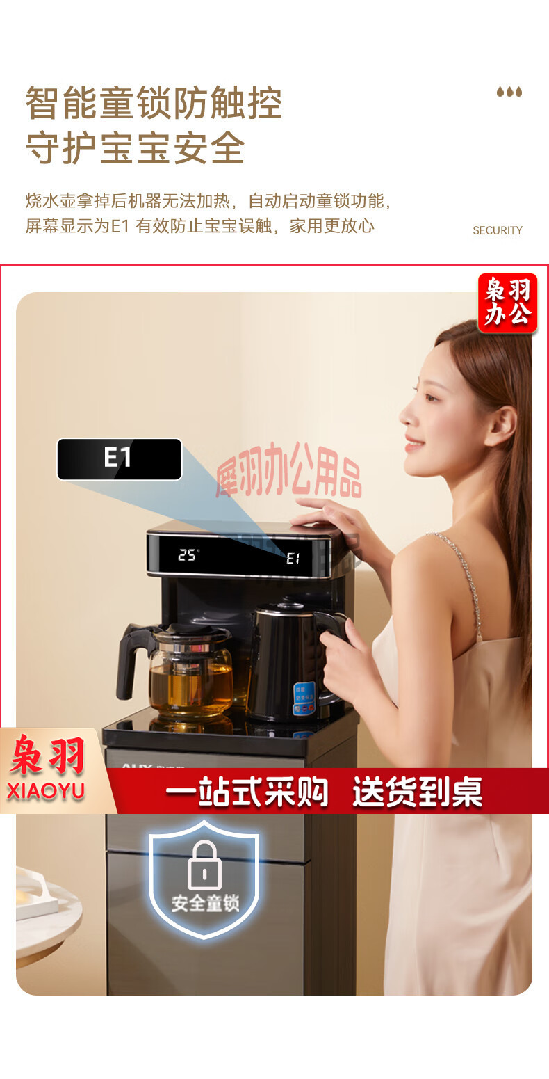 奥克斯(AUX)家用茶吧机大屏下置水桶饮水机 双温双显双出水口 立式智能遥控茶吧机温热款YCB-58