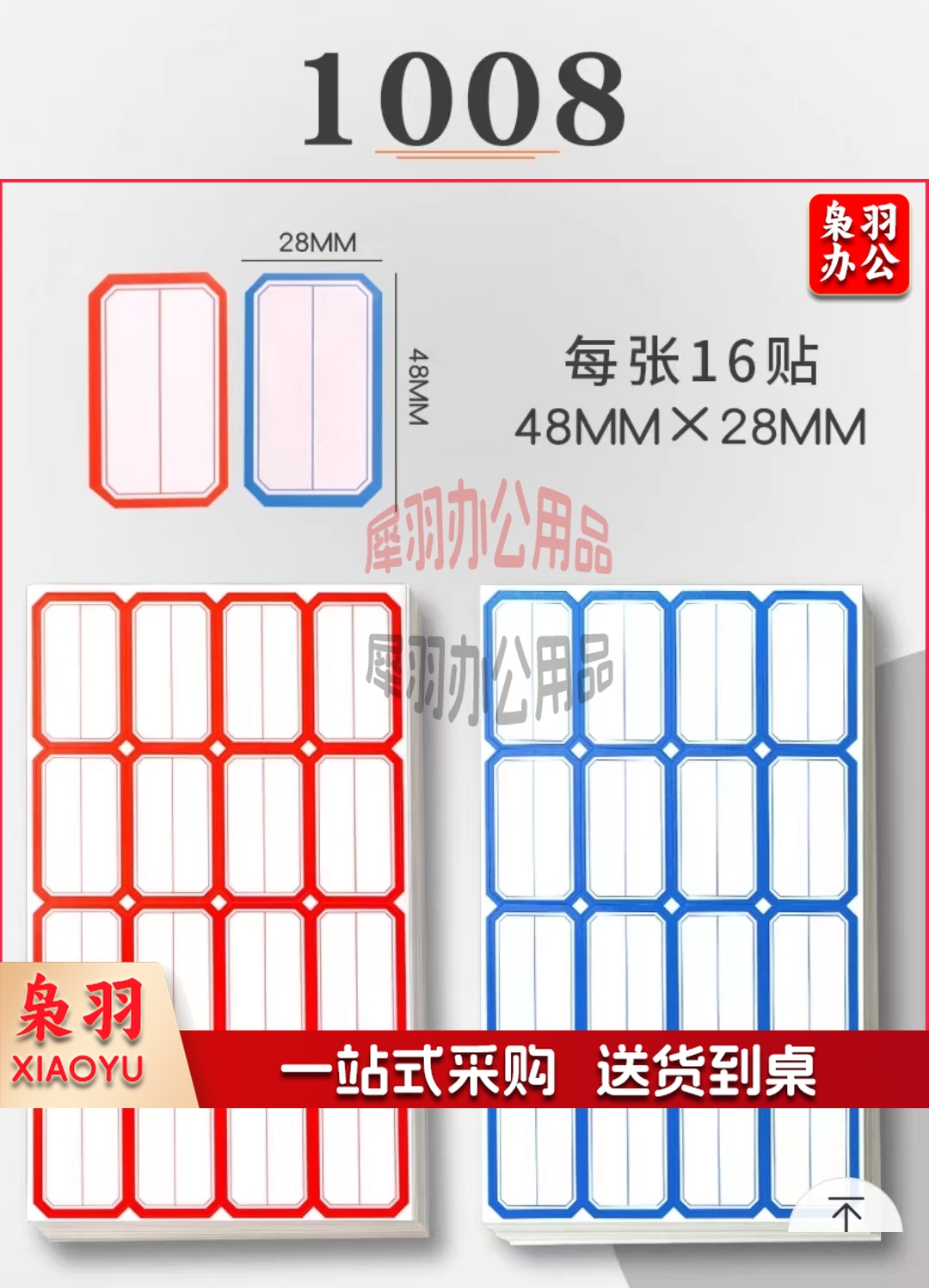 28x48mm不干胶标签贴纸自粘性标贴 50张/包 红/蓝色 1008
