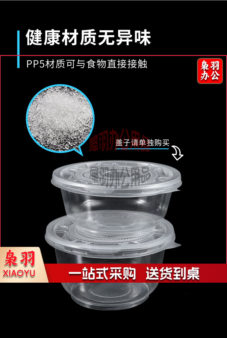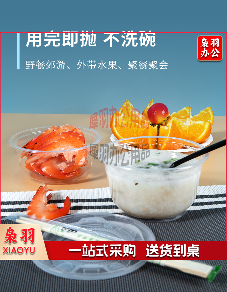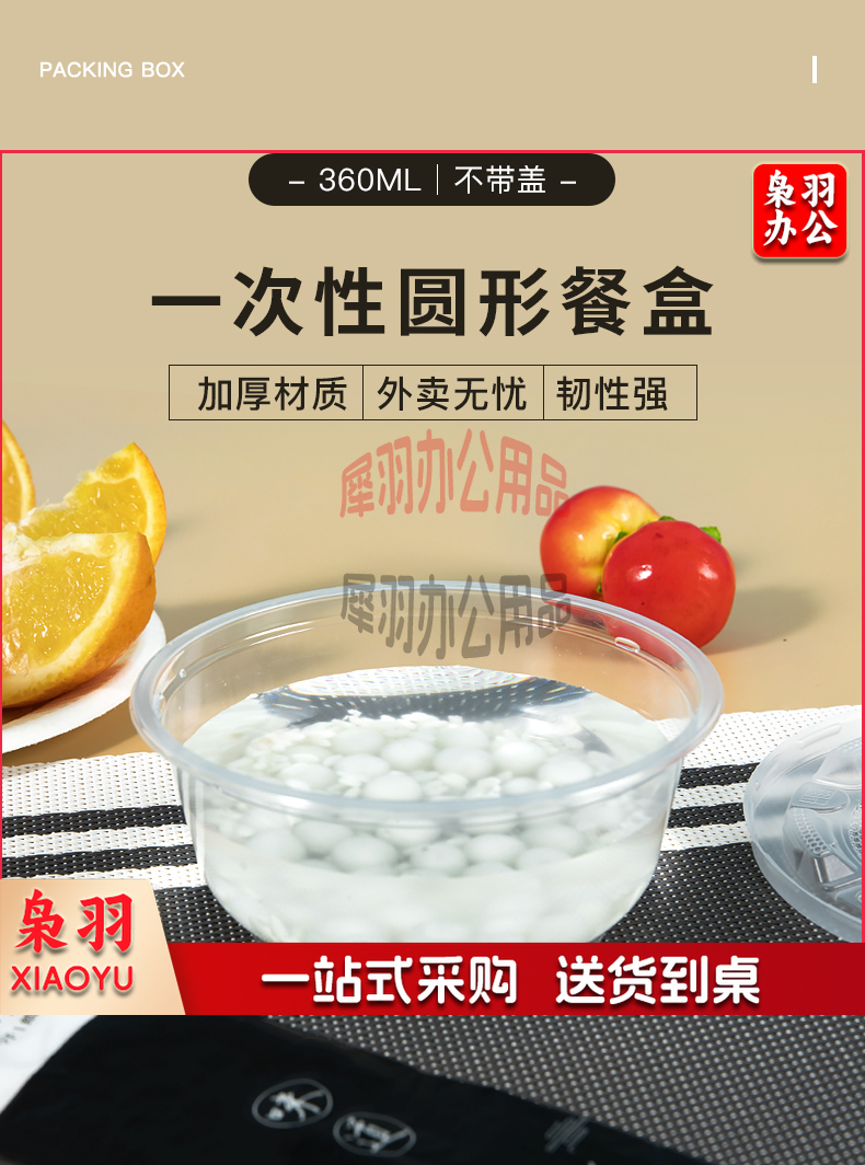 一次性汤碗360ml加厚透明饭碗饺子汤圆汤碗300只装打包盒户外烧烤野炊圆形小碗无盖TMJ-808