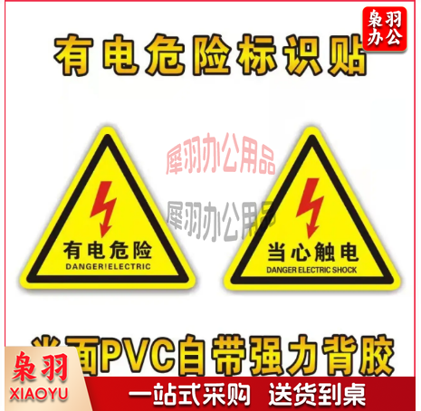 有电危险警示贴 三角形安全标识牌 当心触电贴纸 警示牌 12*12cm 10张装