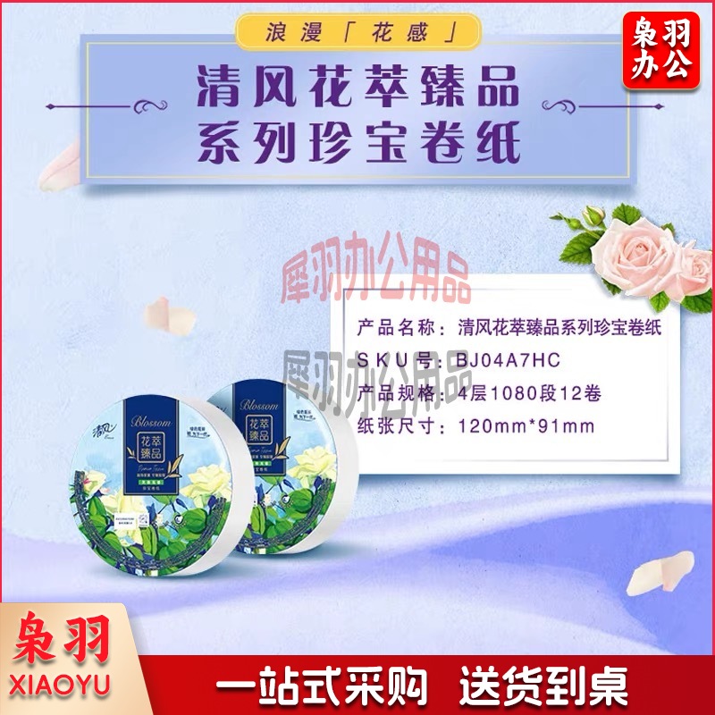清风花臻品系列珍宝卷纸大盘纸酒店商场卫生间厕所用纸