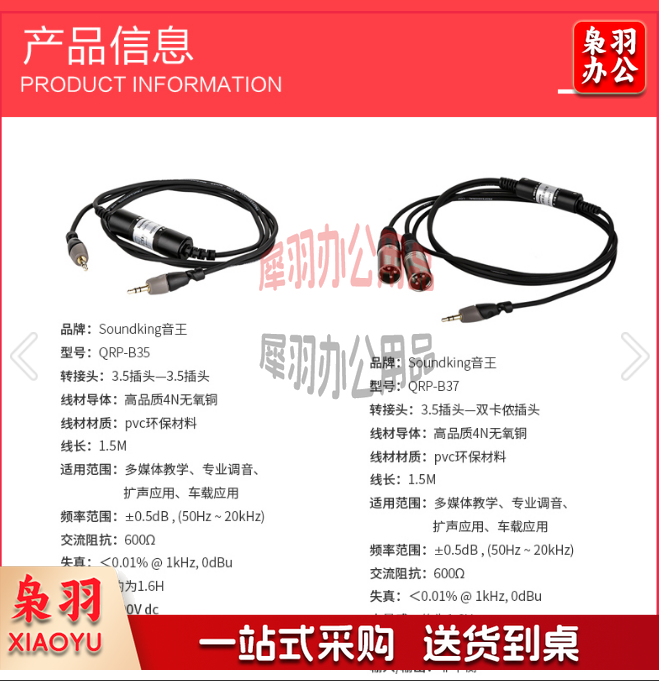 音王(Soundking) 音频噪音隔离线抗干扰音频线一分二3.5转3.5双莲花大二芯卡农公 3.5公转3.5母连线 0.3m QRP-B38 XEBN06051634544149