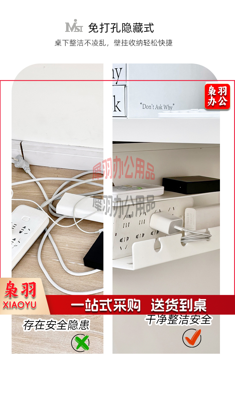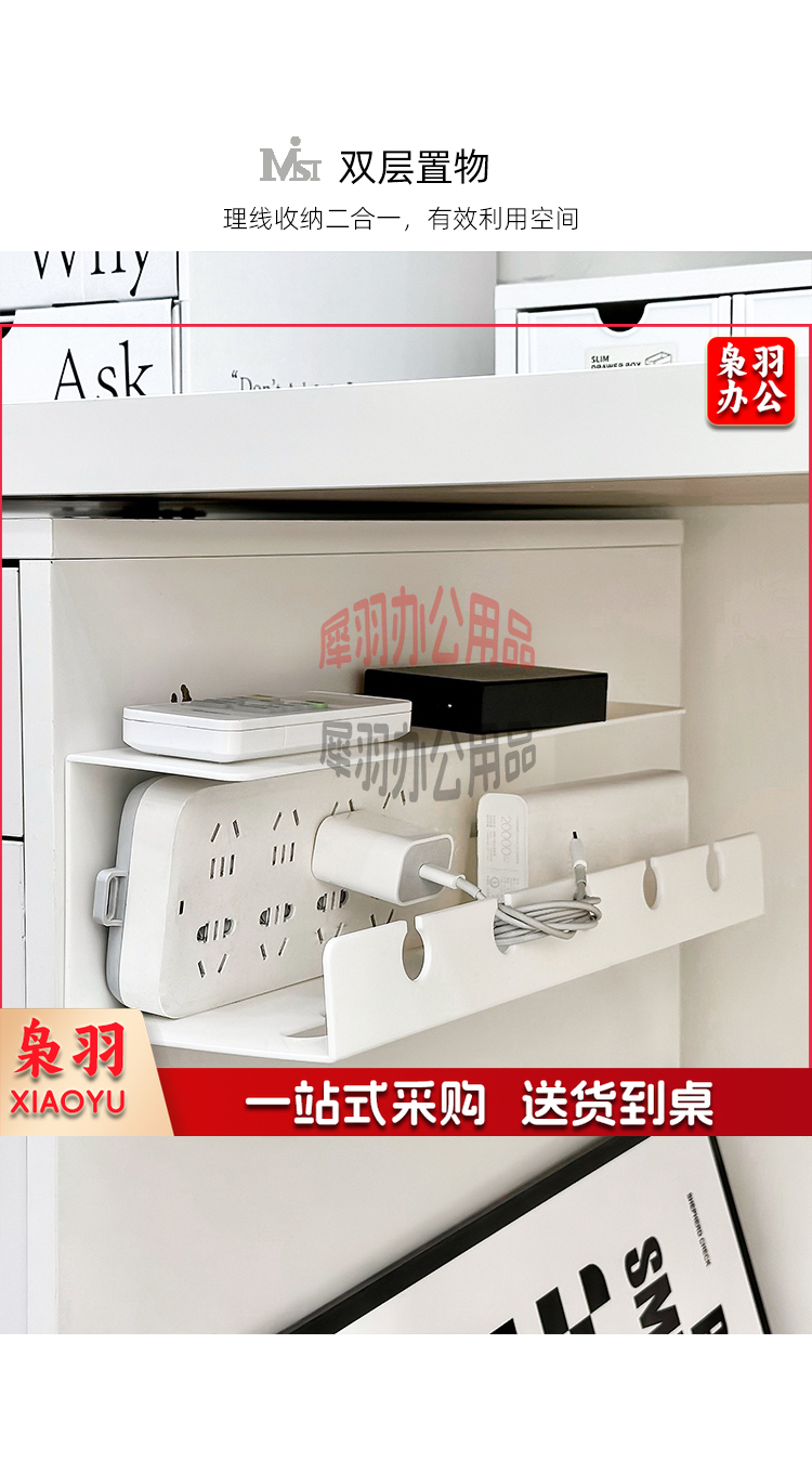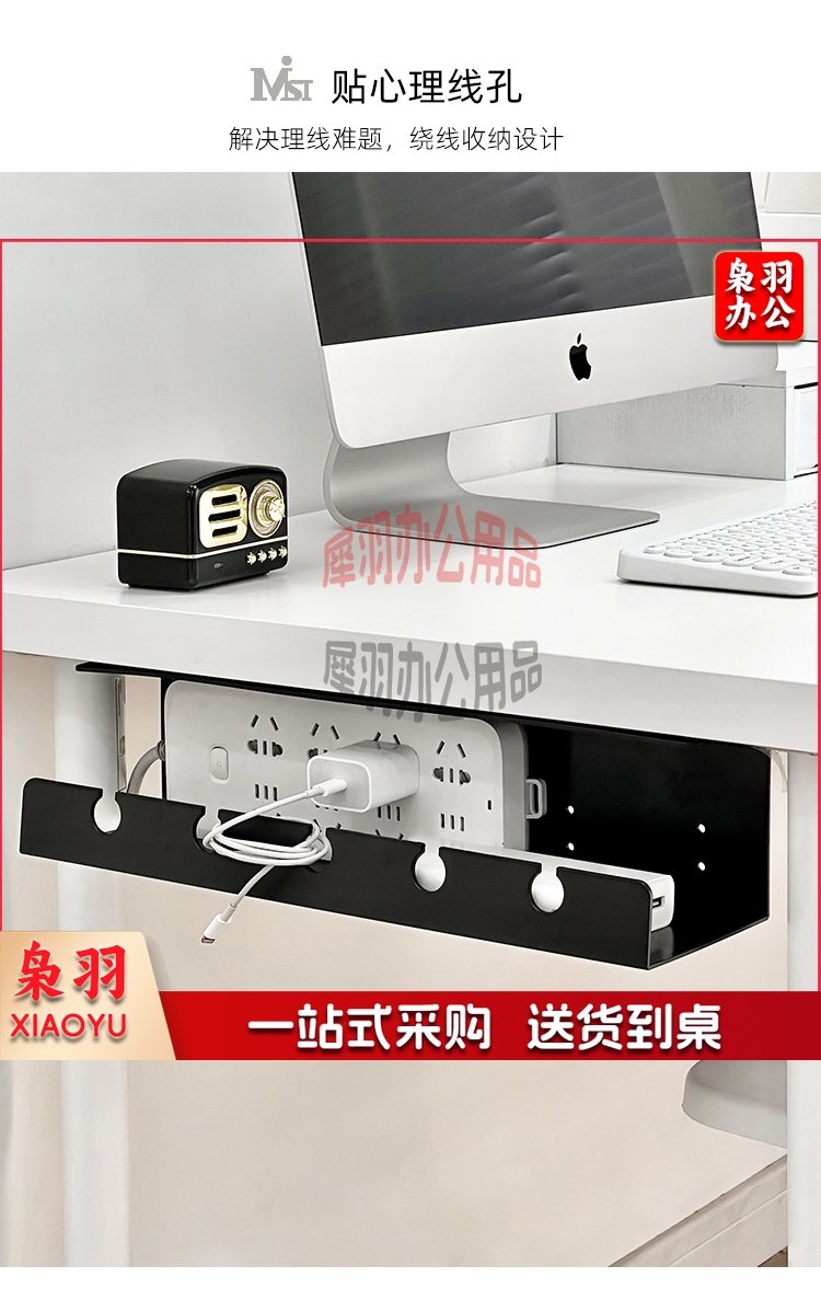 桌下理线架插座插排电线收纳固定器办公桌底电脑理线器盒槽免打孔 yykj-240524144208