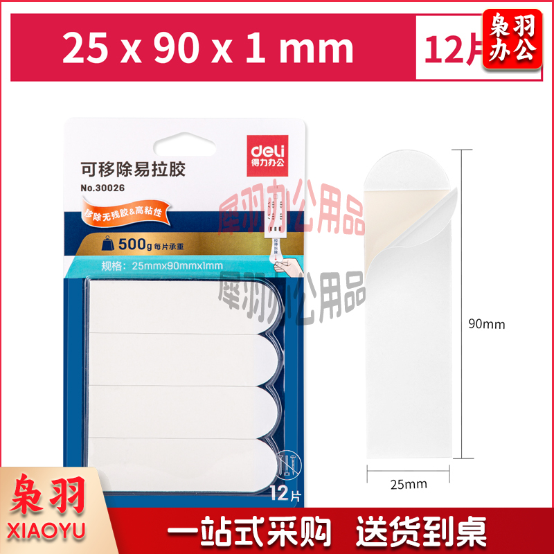 得力30026 可移除易拉胶25mm*90mm(12片/卡)(白色)(12片/卡) TJHX10260923127617