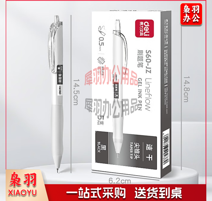 得力(deli) 小白笔顺滑刷题笔0.5mm速干按动中性笔黑色时尚ST笔尖学生用作业考试签字笔水性笔 刷题笔-5支装【ST头】
