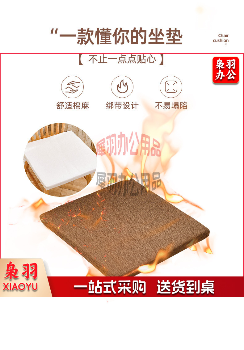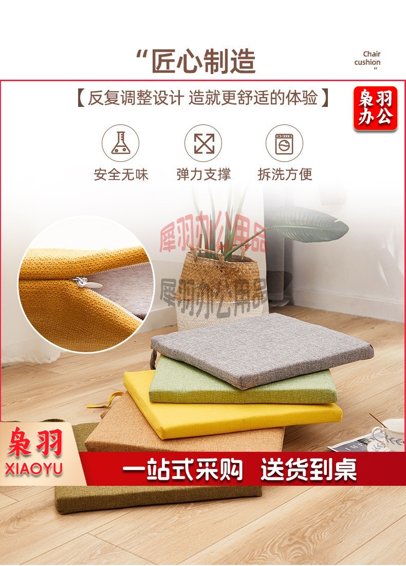 冬季坐垫办公室久坐屁垫棉麻椅垫垫子地上学生厚餐椅座垫40*40cm(4cm厚)