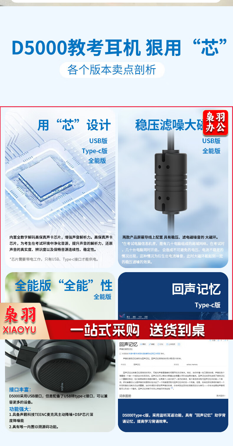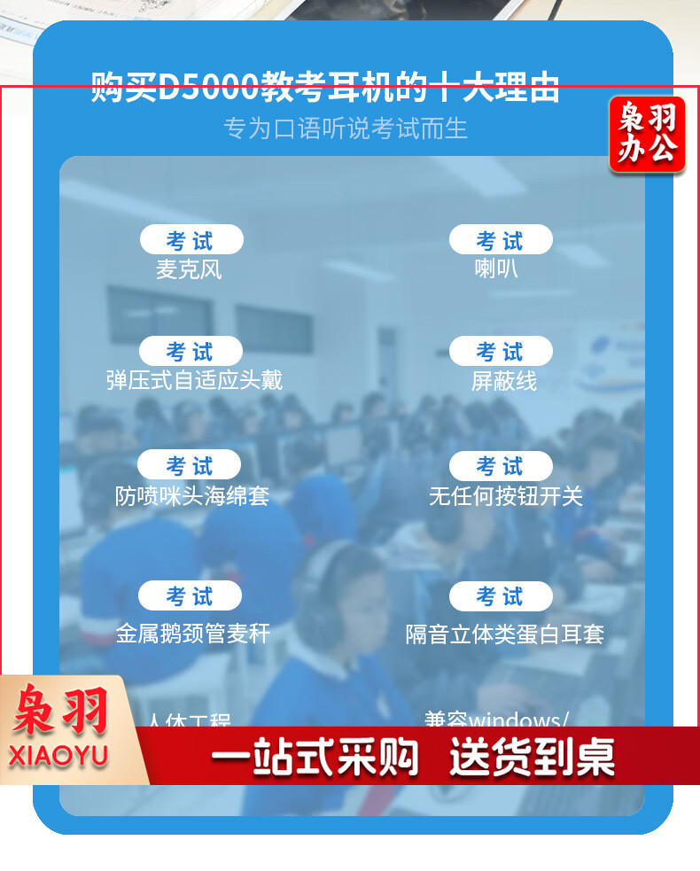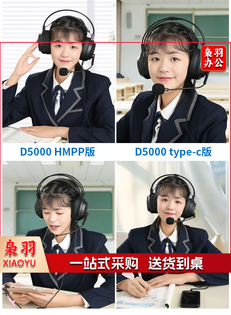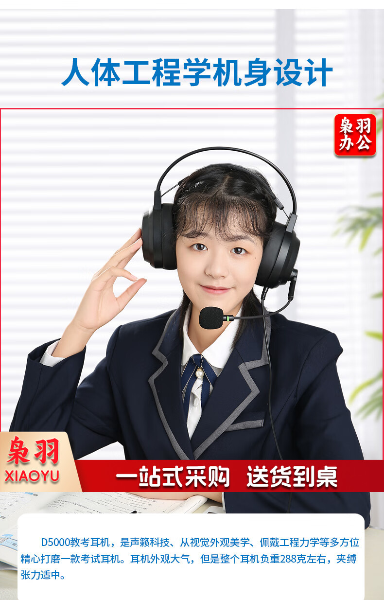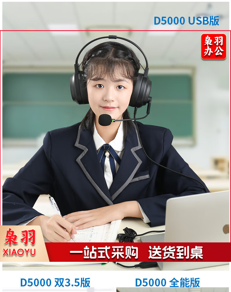 电音D5000英语听说考试专用耳机头戴式有线带麦克风训练初中高中人机对话语录音跟读耳麦带话筒USB接口