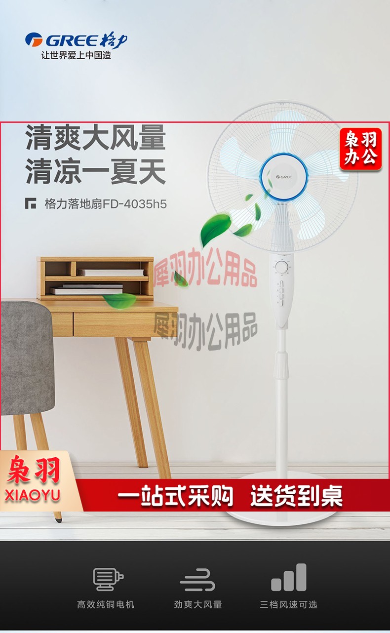 格力落地扇 3档风速 清爽大风量 清凉一夏天 FD-4035h5 白+蓝色 电风扇