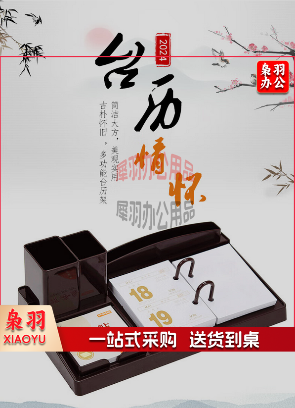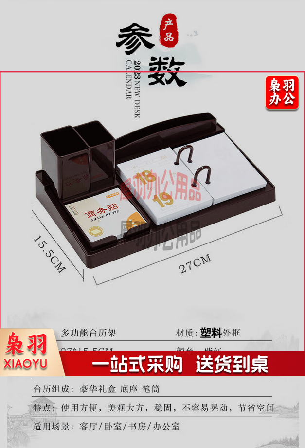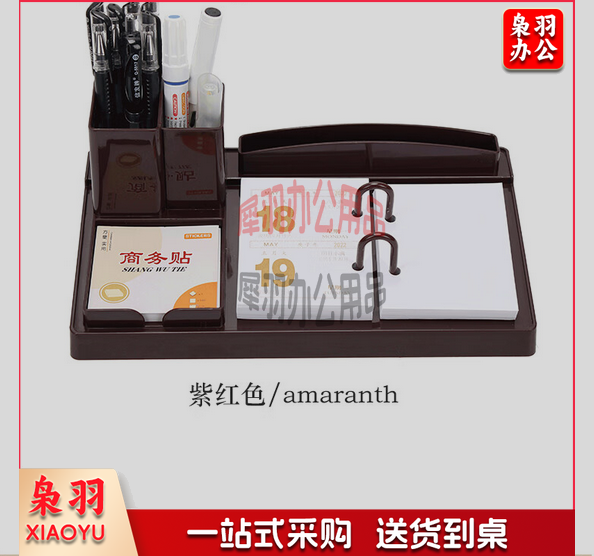 台历架摆件塑料创意多功能笔筒商务办公桌摆座日历 GW-19035 紫红色