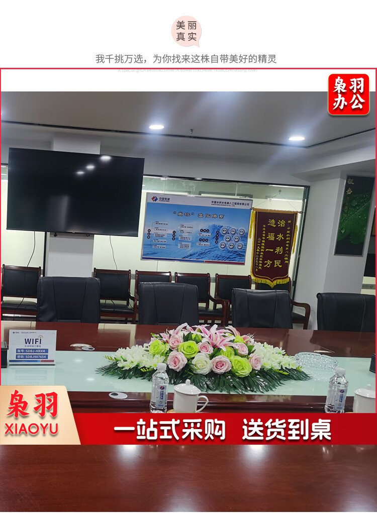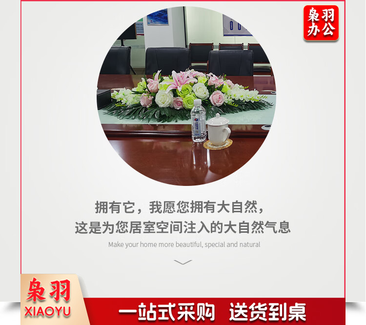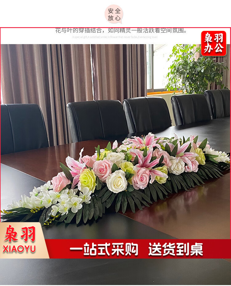 会议室桌花 摆花 仿真花 桌面假花 会议桌花 60cm 粉绿色