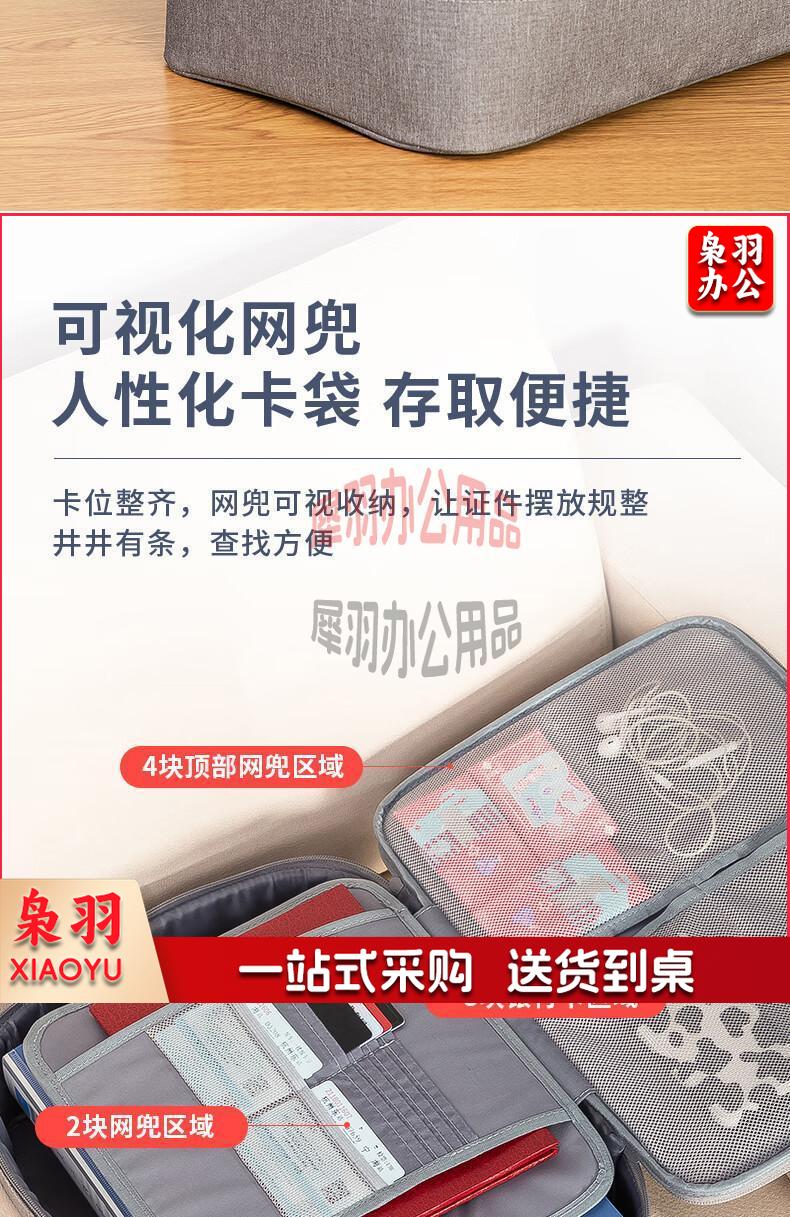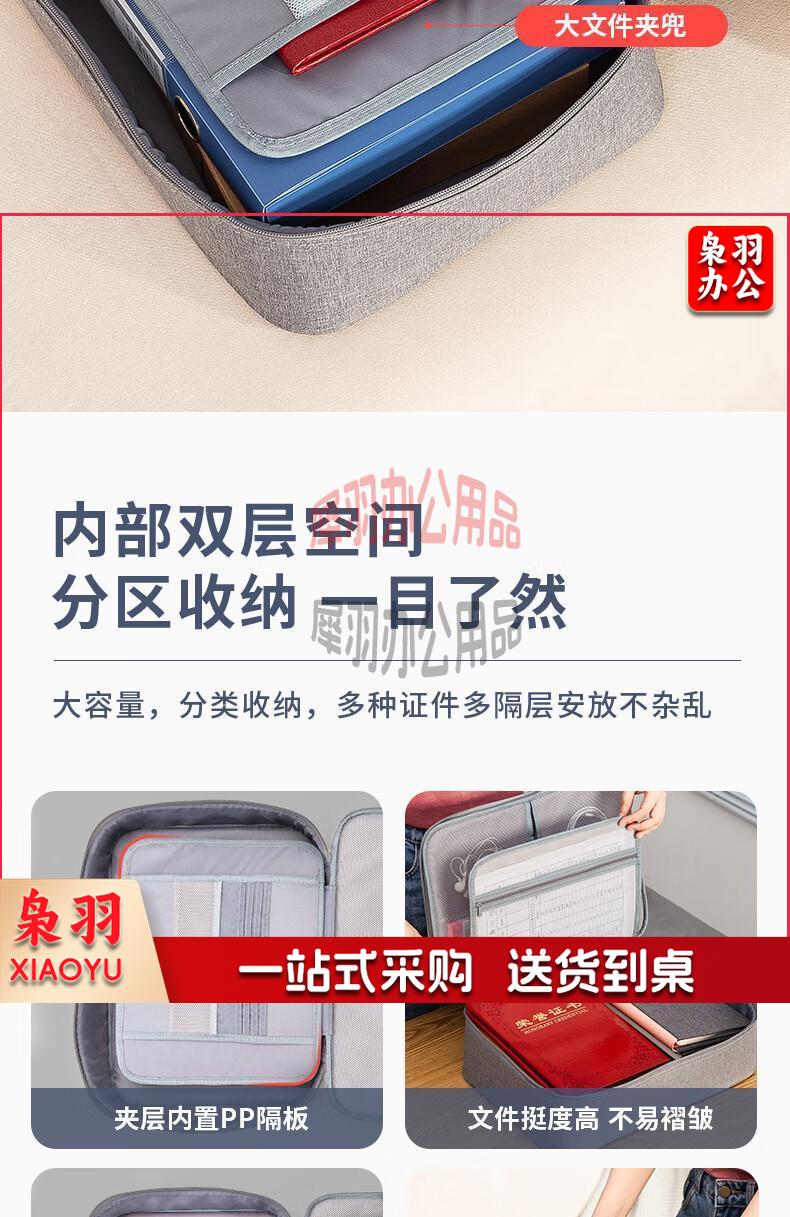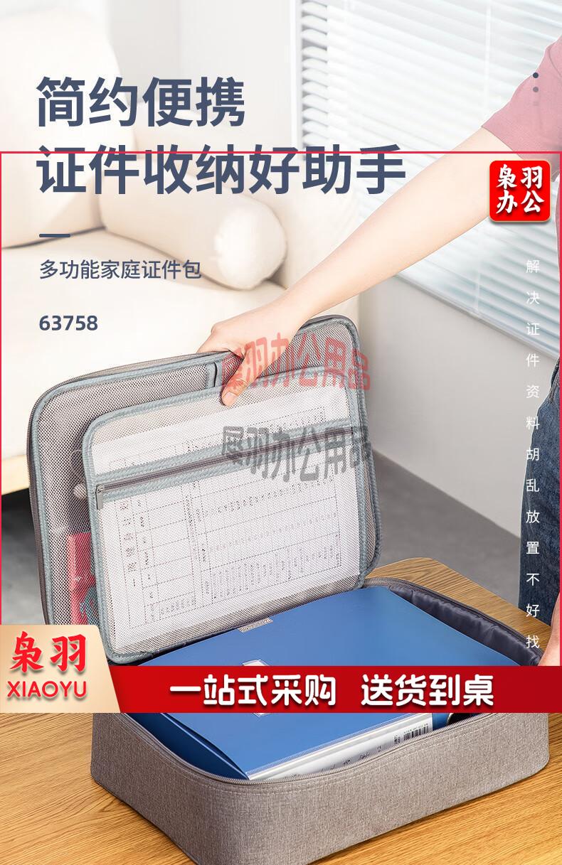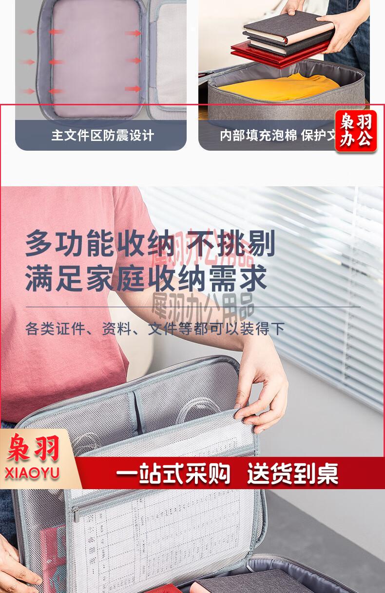 得力(deli)防水防尘证件收纳包 家用大容量多功能文件袋文件包事务包收纳箱内置PP隔板 双层 灰色 63758