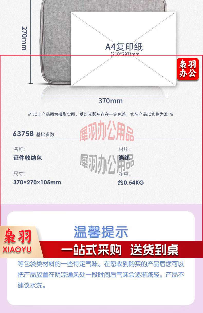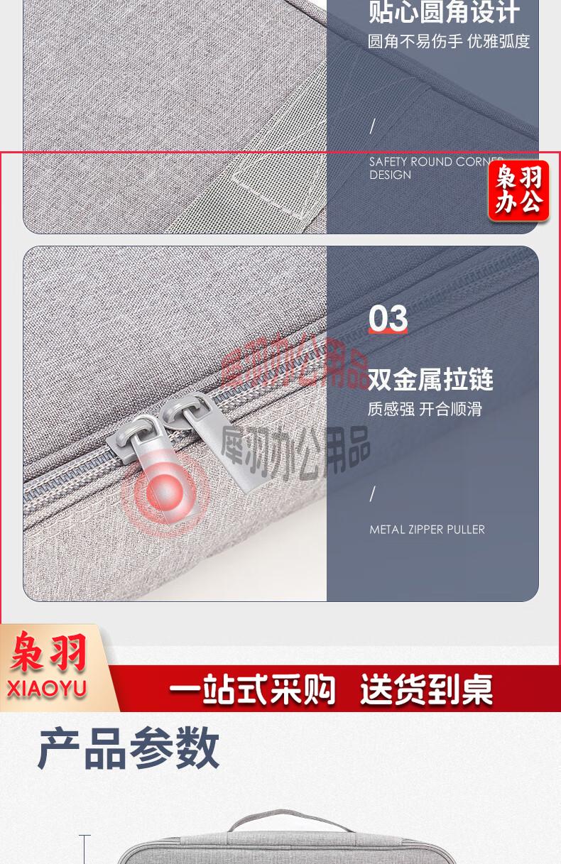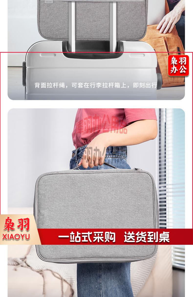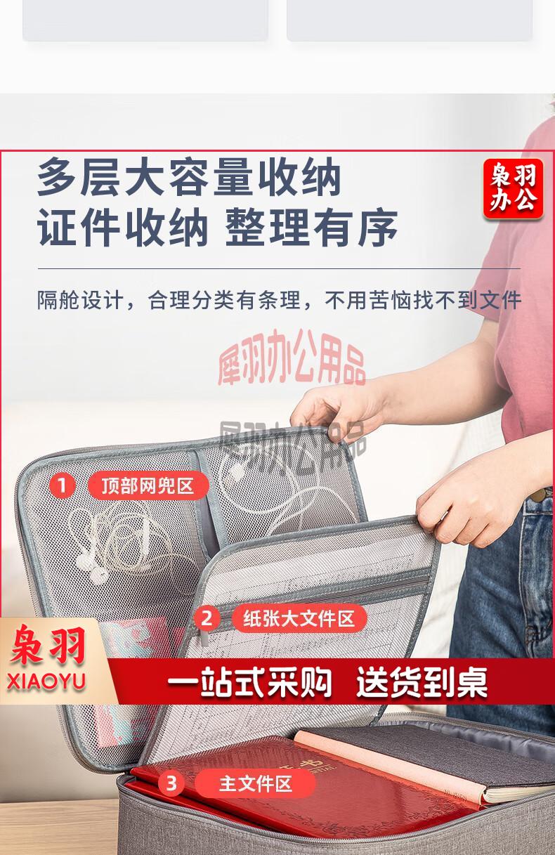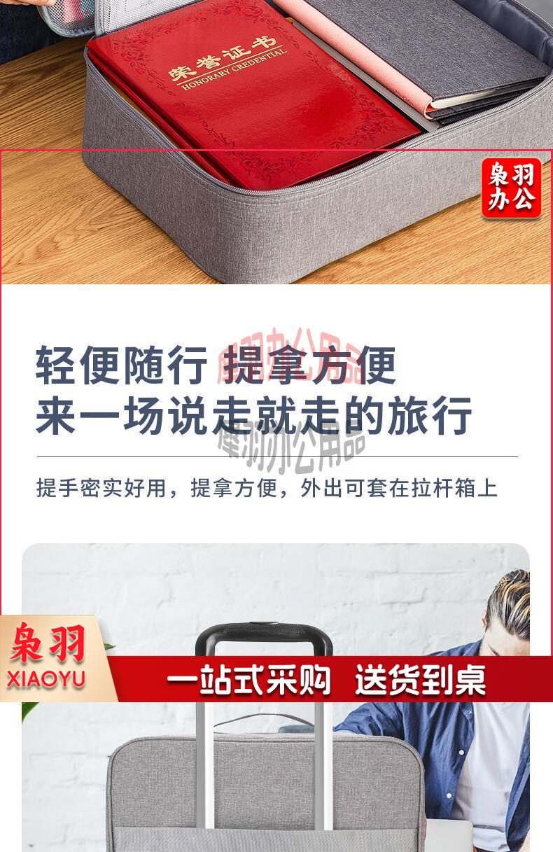 得力(deli)防水防尘证件收纳包 家用大容量多功能文件袋文件包事务包收纳箱内置PP隔板 双层 灰色 63758