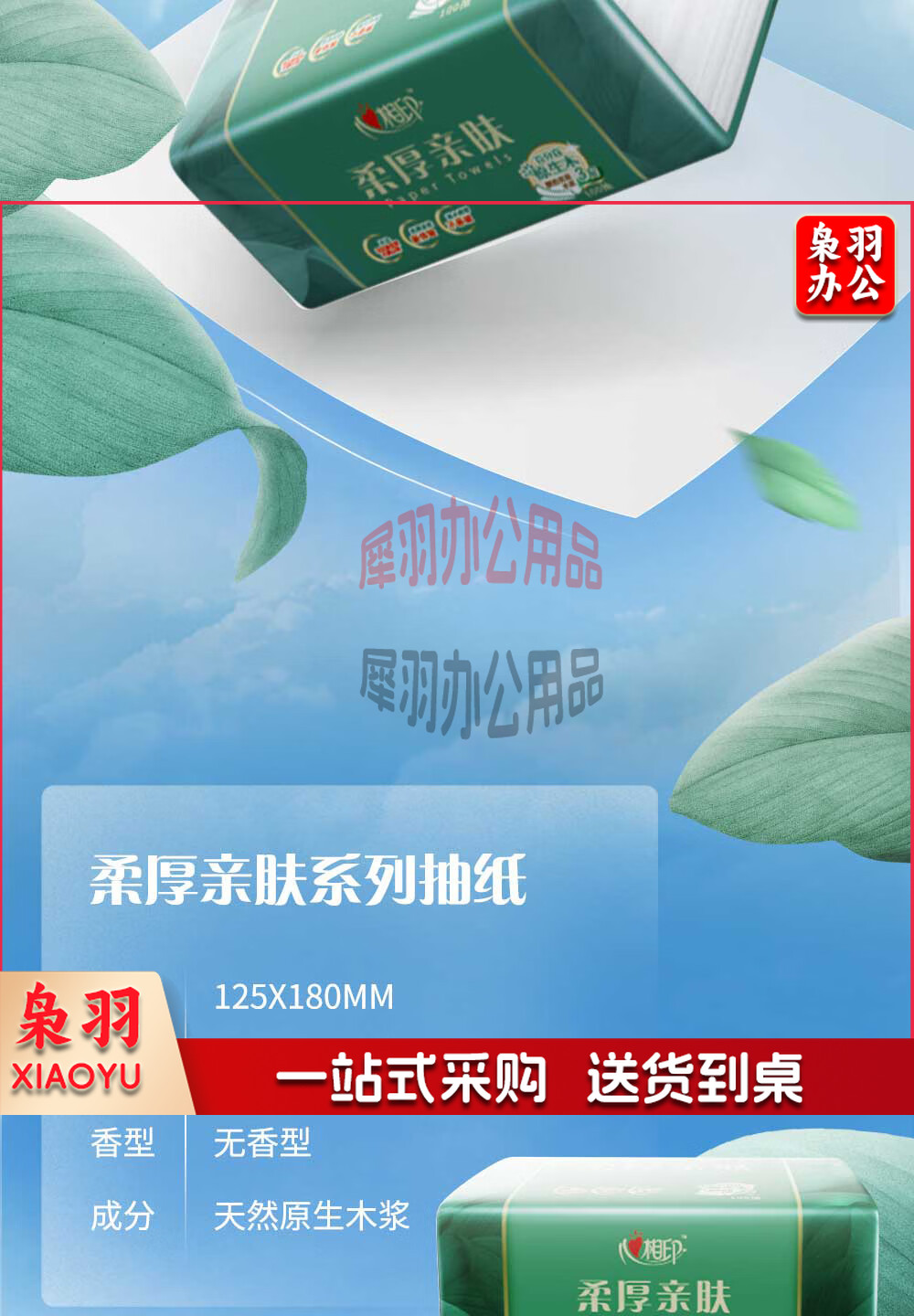 心相印 柔厚亲肤3层100抽18包塑装纸面箱装厚实不易破擦拭更安心 DT100