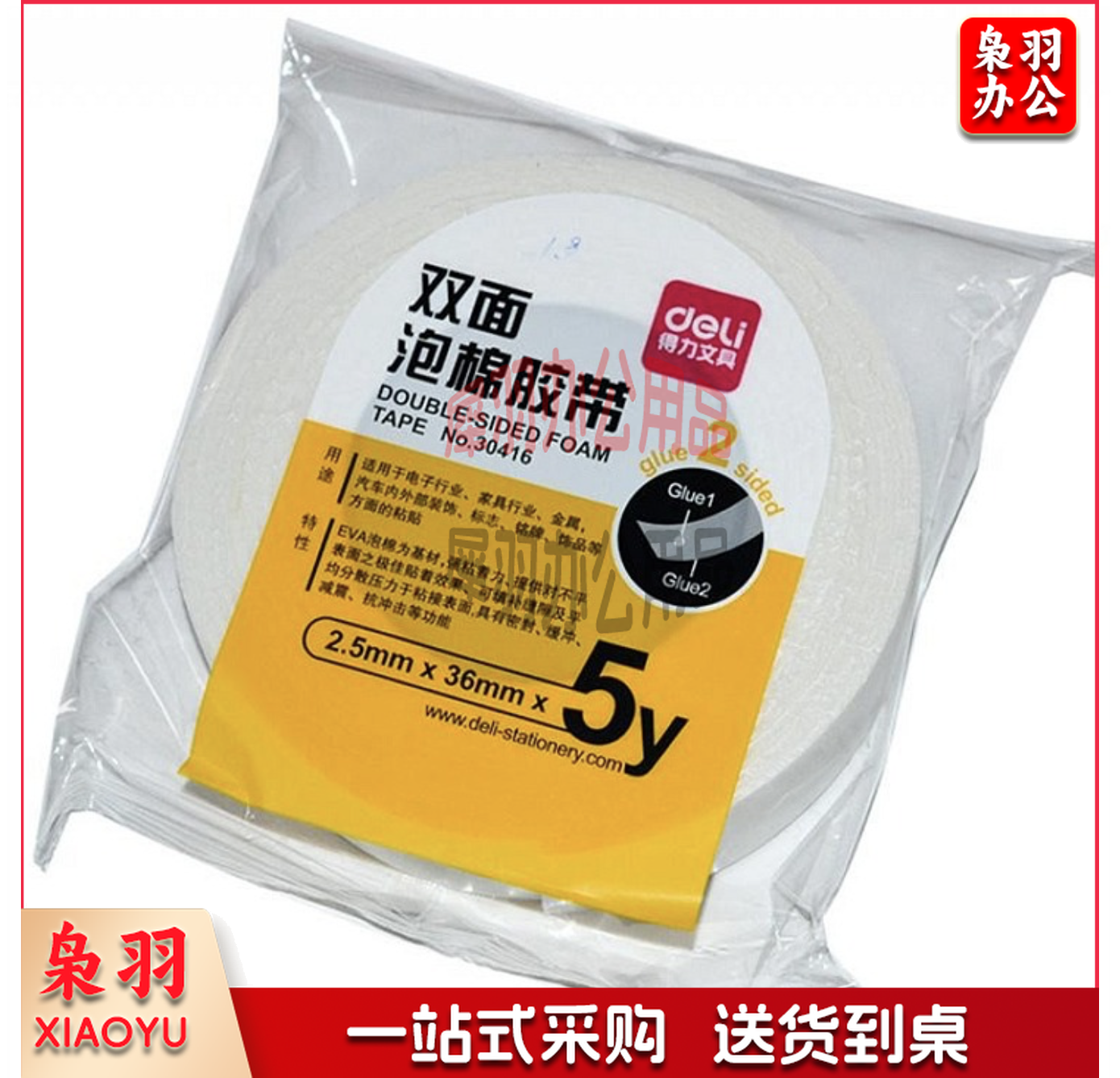 得力 30416 EVA泡棉双面胶带 36mmx5y 1卷袋