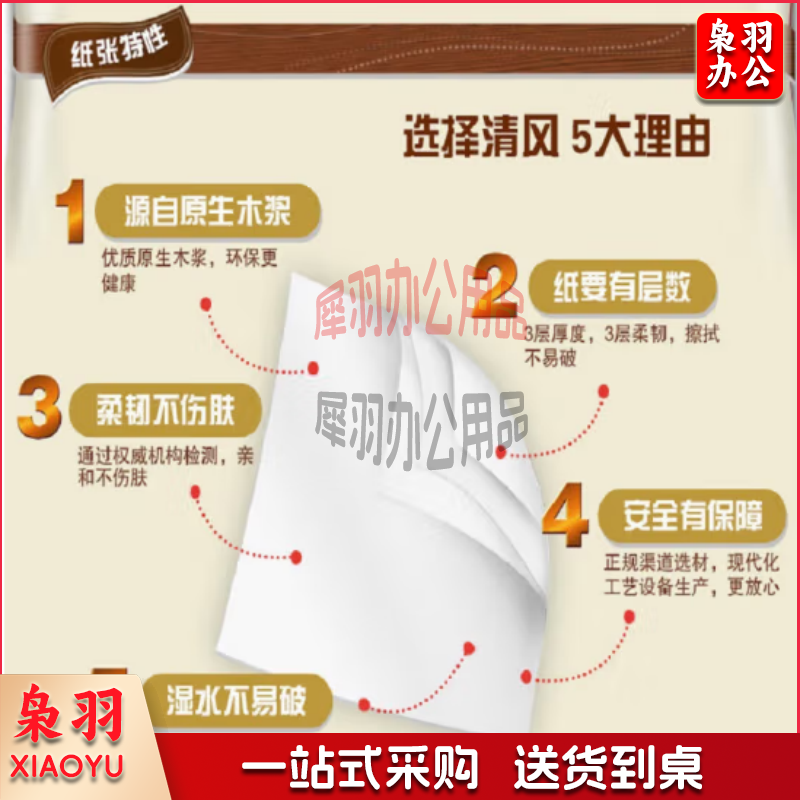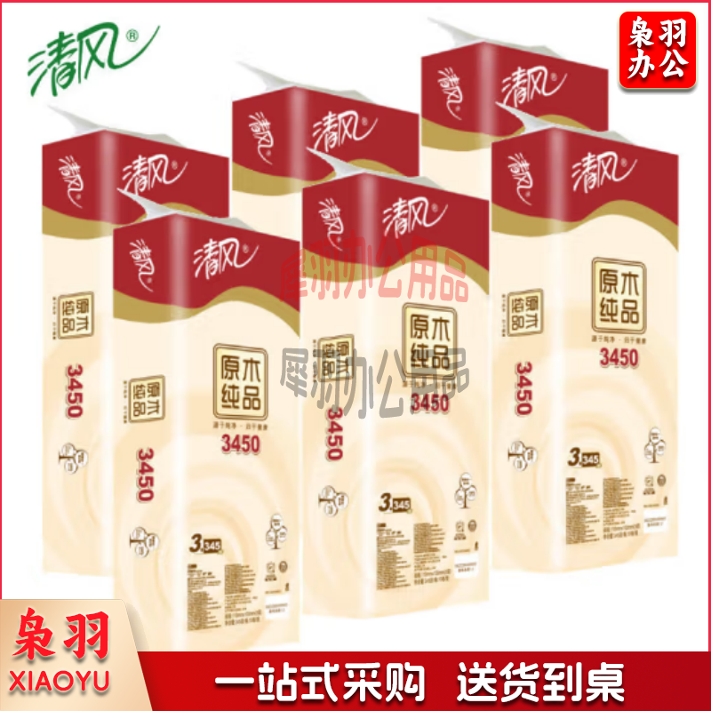 清风原木纯品3层平纹345段卷筒卫生纸