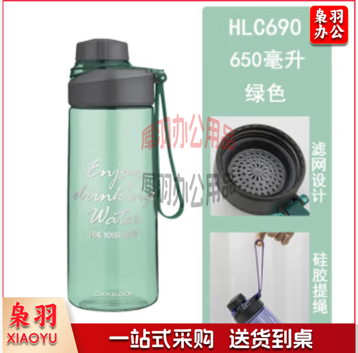乐扣乐扣 LOCK&LOCK HLC690 塑料户外便携大容量运动水杯 提绳带茶隔杯子 绿色650ml
