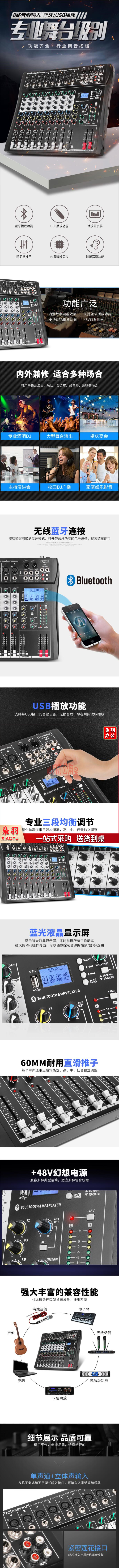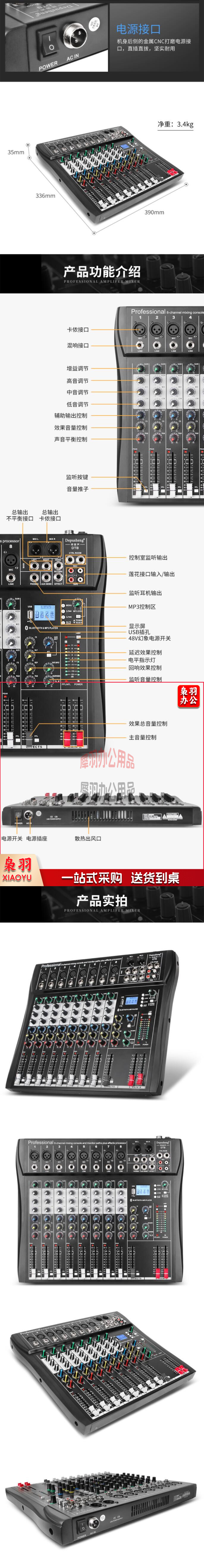 得普声(depusheng) DT8 专业8路调音台舞台演出带混响蓝牙MP3播放多路控制户外带效果均衡