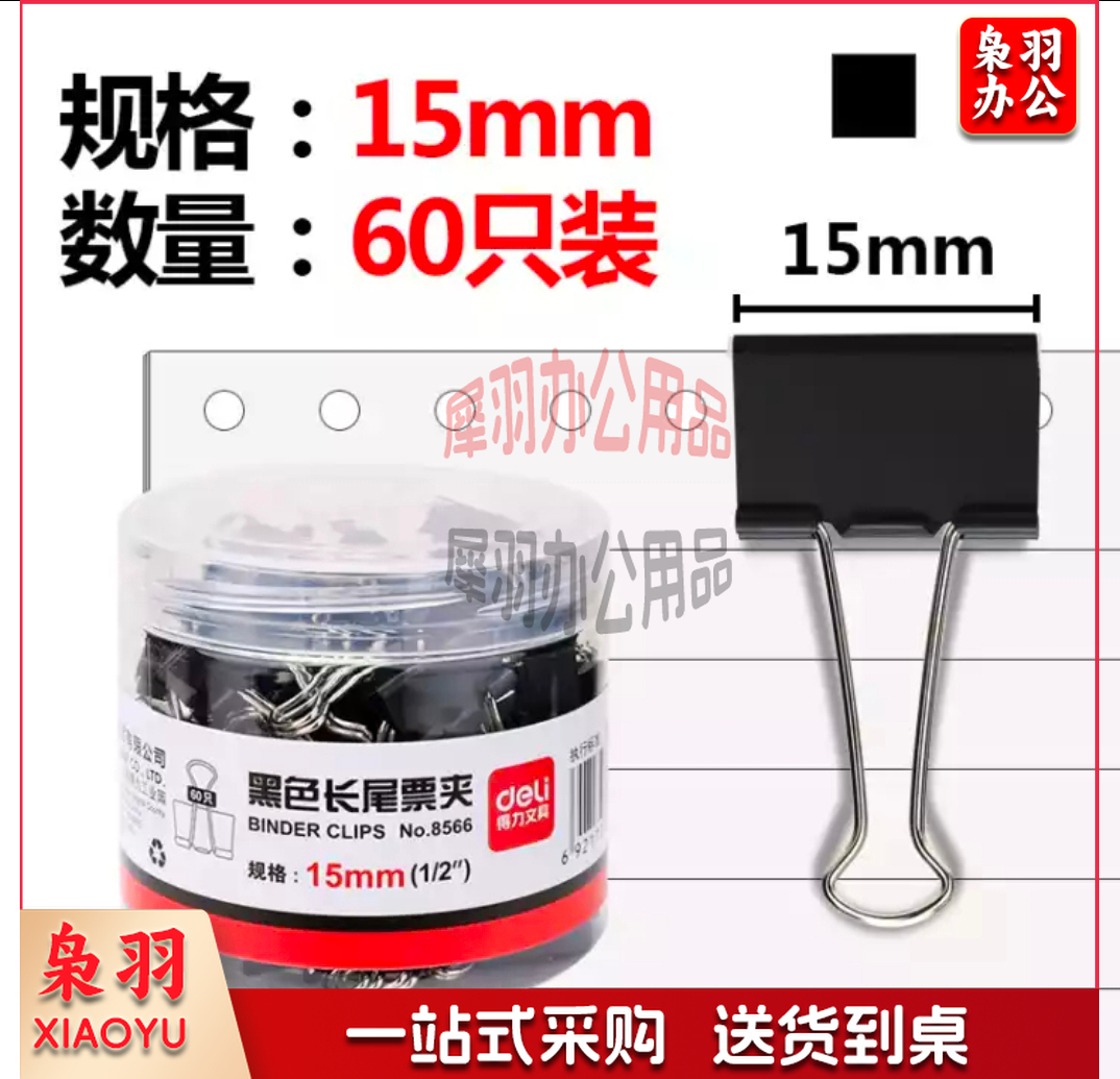得力 8566-6#黑色长尾夹15mm筒装(黑)