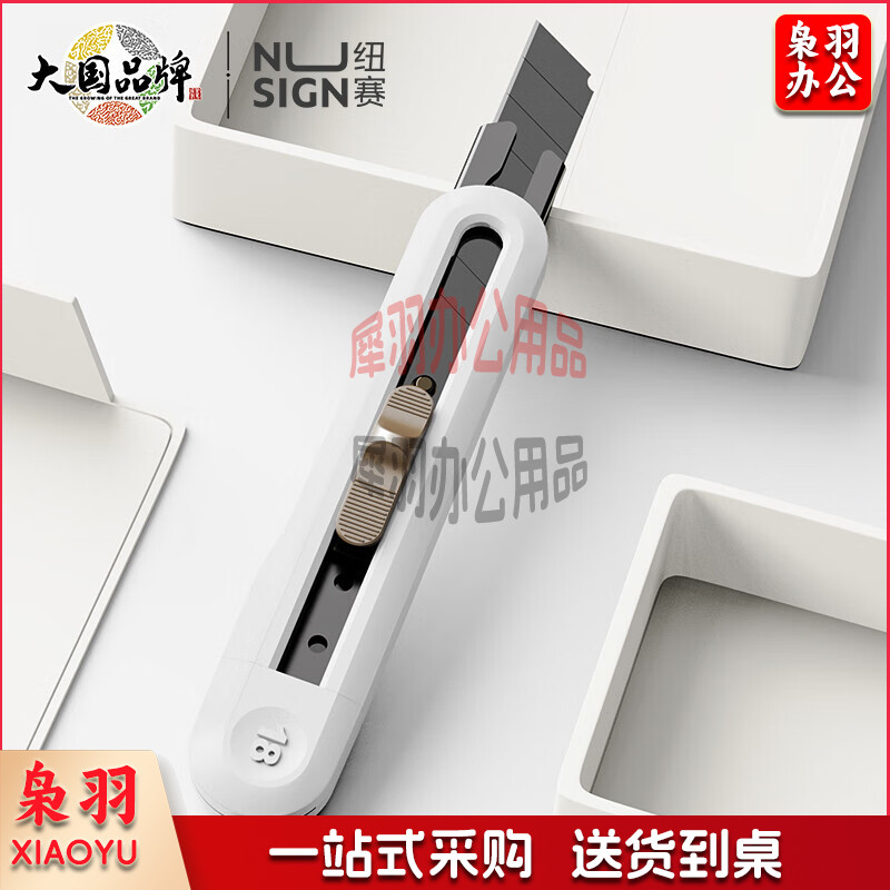 得力纽赛(NUSIGN)大号撞色设计美工刀壁纸刀裁纸刀 办公用品 尾部自带折刀器 汉玉白 NS062