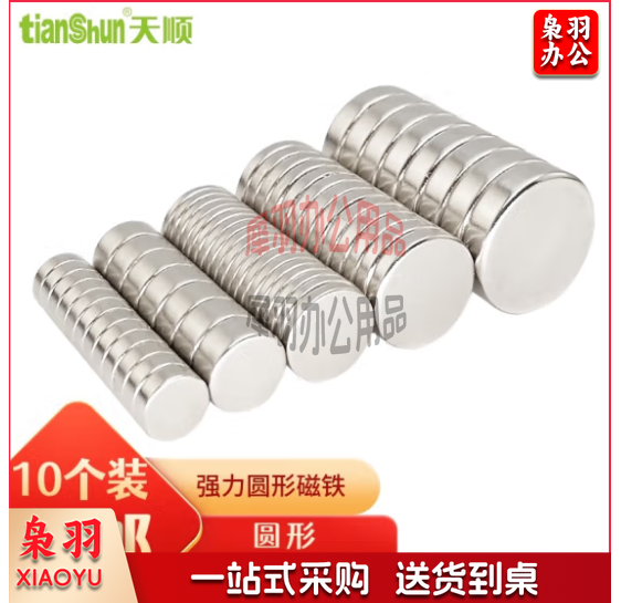 天顺 强力磁铁圆形吸铁石强磁石贴片磁钢5-25mm高强度钕汝銣 强力磁铁块 直径20*厚度5mm(10个装)