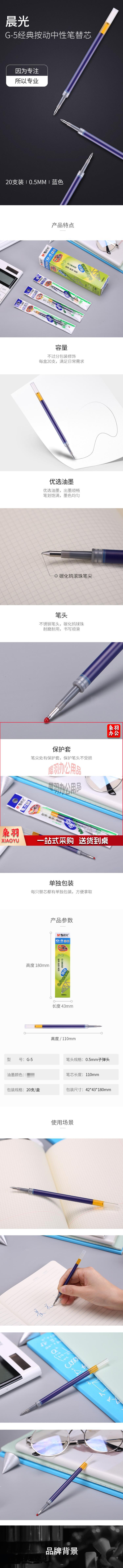 晨光 G-5 按动笔芯替芯 0.5 红色1008/K35/S01/S08适用 20支/盒 请整盒下单