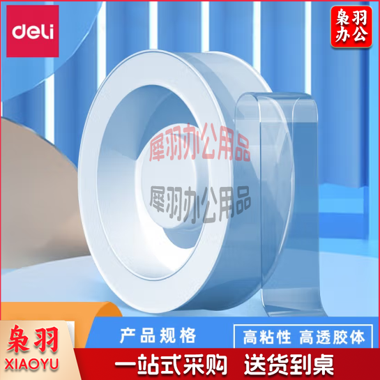 得力(deli)33601 纳米双面胶带透明防水(1mm厚*3cm宽*3m长)(卷)