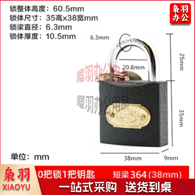 三环 挂锁 互开锁 通开锁 38mm 10把锁配1把钥匙 单位:把