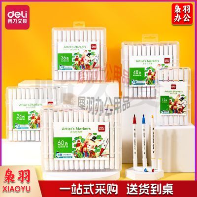 得力(deli)24色儿童马克笔 抑菌笔杆双头水性无异味水彩笔 学生美术专用绘画画笔套装70810-24