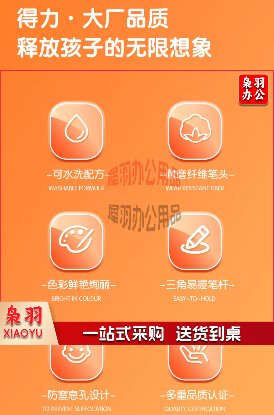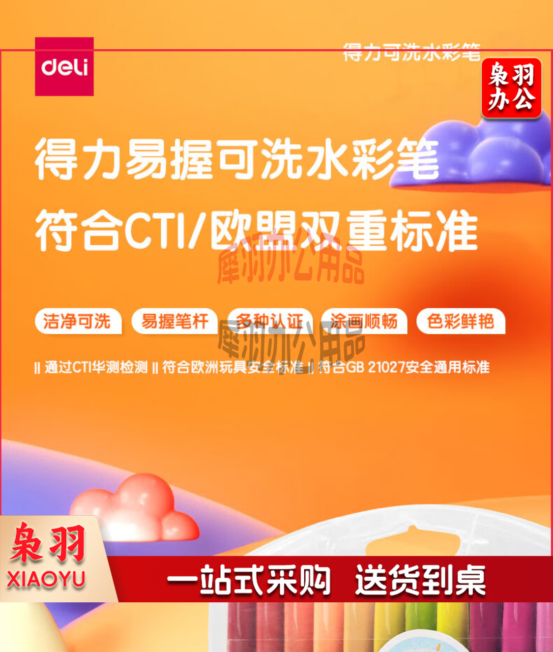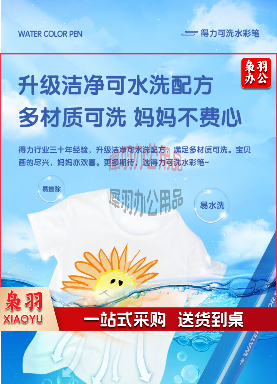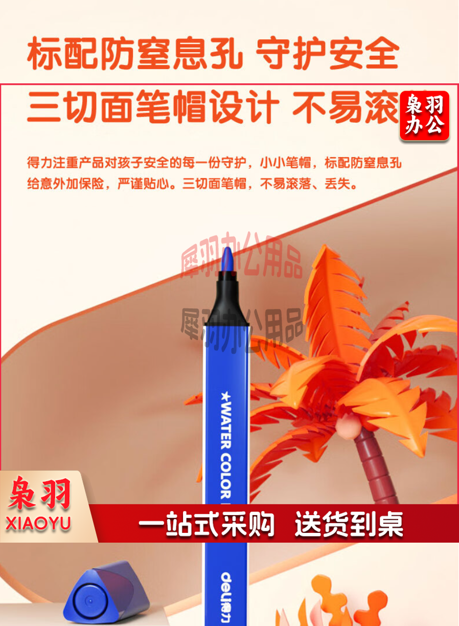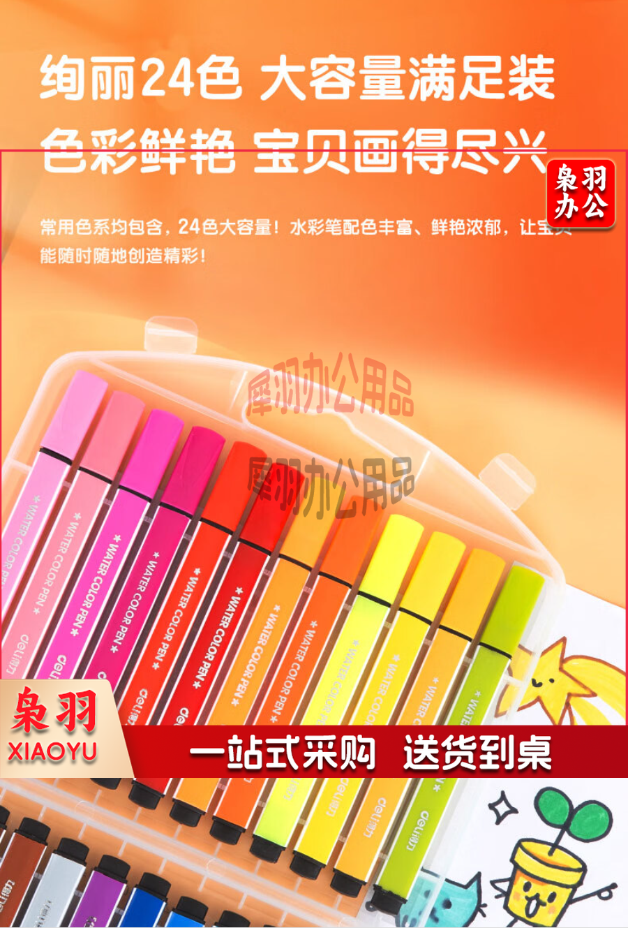 得力(deli)24色可水洗水彩笔易握粗三角学生儿童涂色颜色马克笔画笔套装