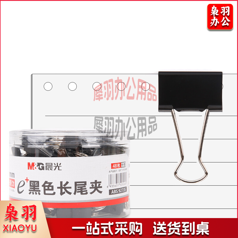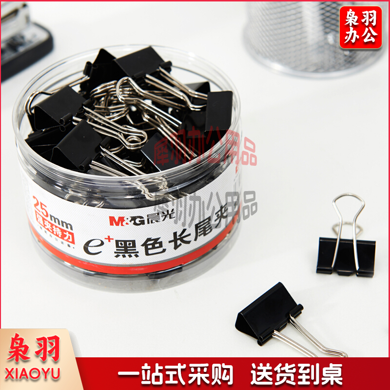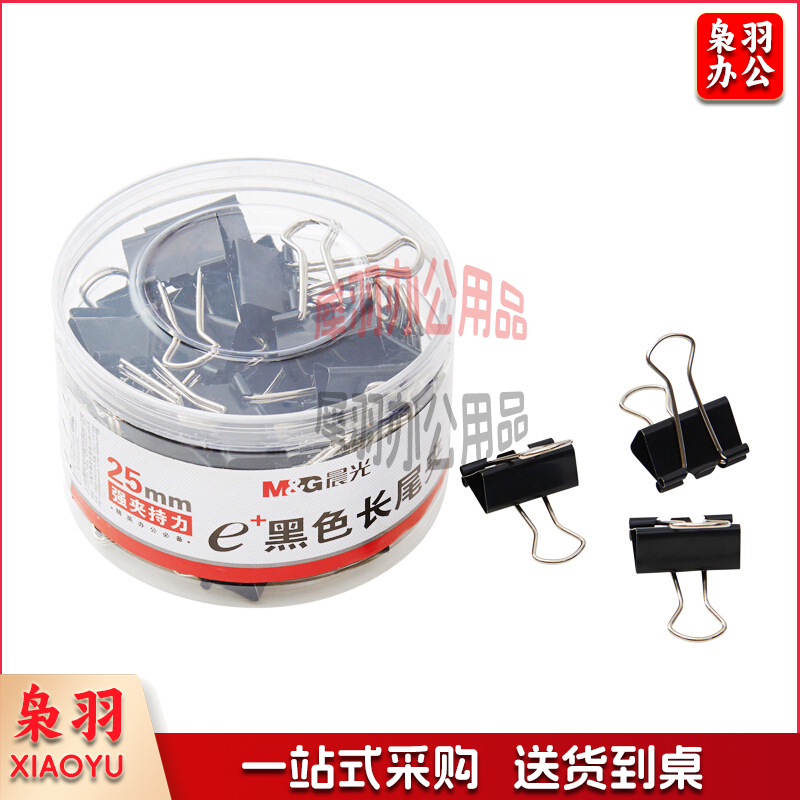 晨光 M&G Eplus筒装黑色铁质长尾夹 4号 ABS92735 25mm 48个/筒 48筒/箱