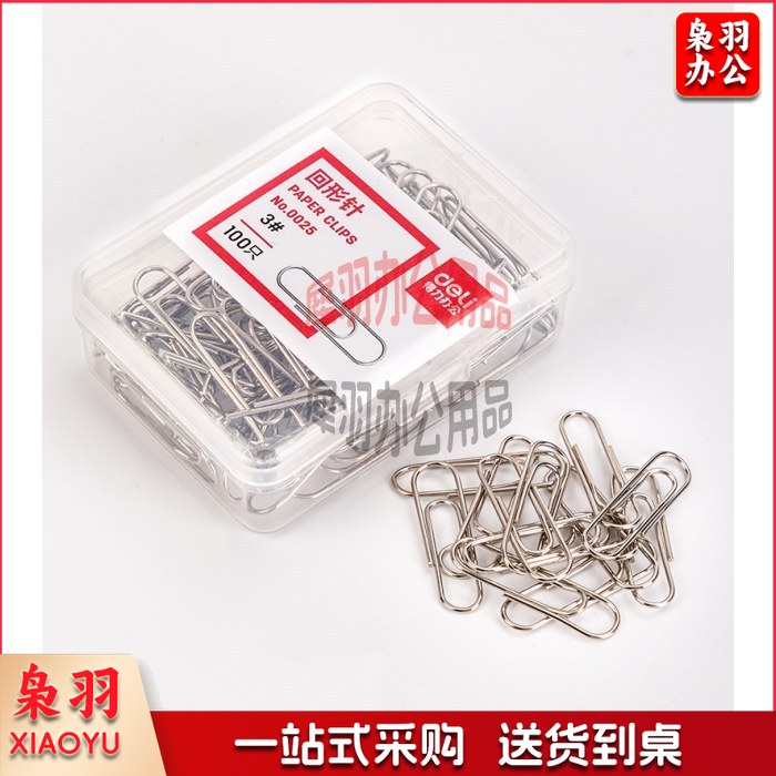 得力0025回形针29MM不锈钢本色得力 0025银色回形针 100枚/盒 10盒/包