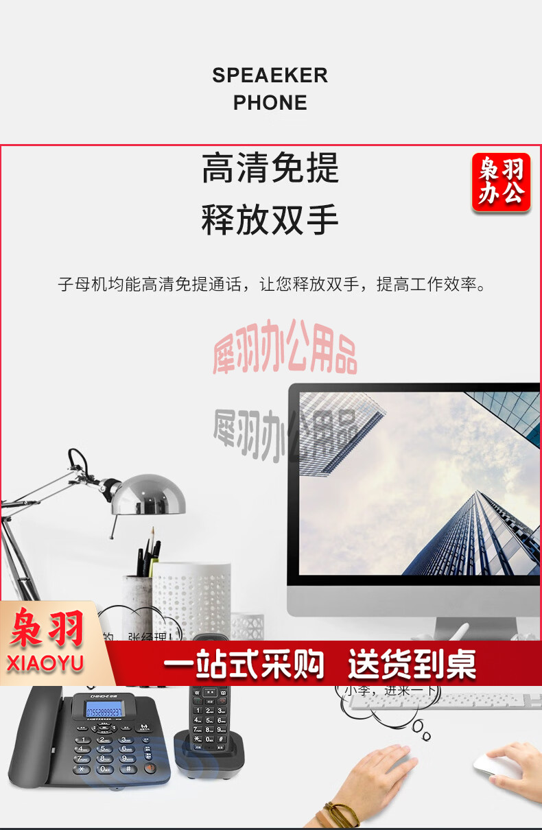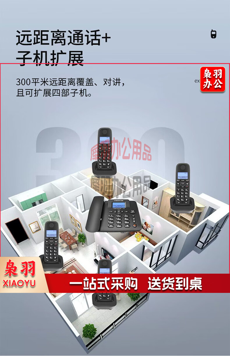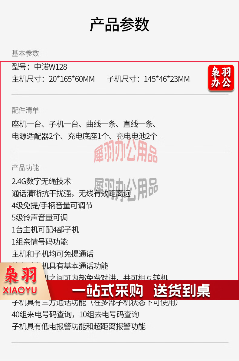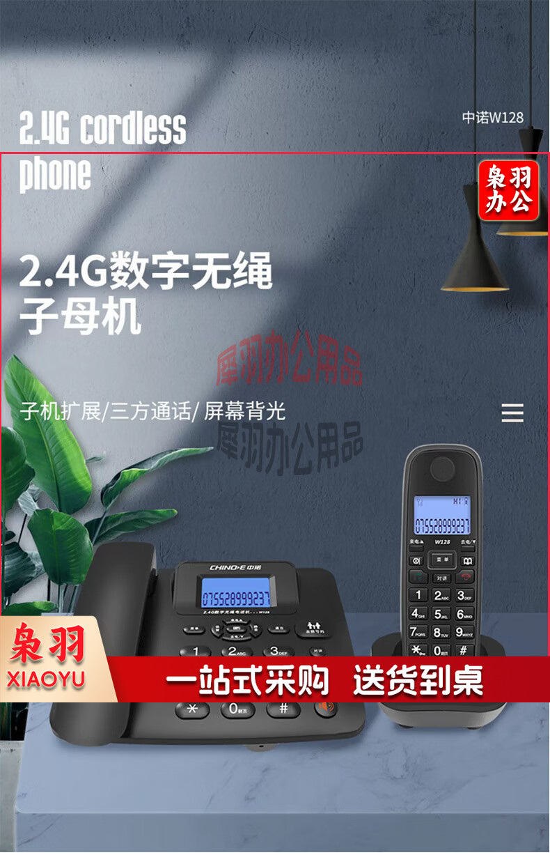 中诺数字无绳电话机无线座机子母机一拖一套装内线通话一键拨号固定电话W128黑色