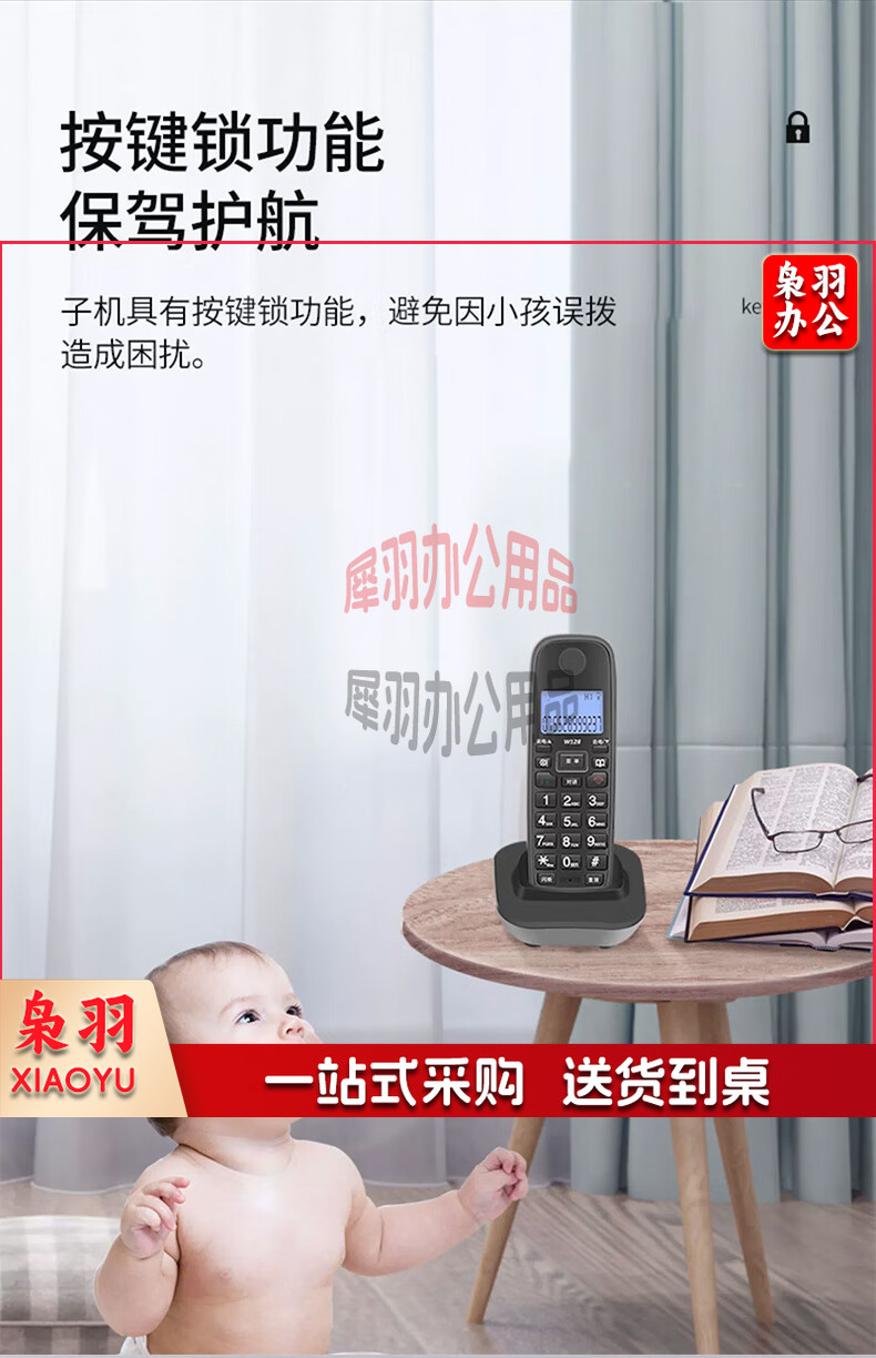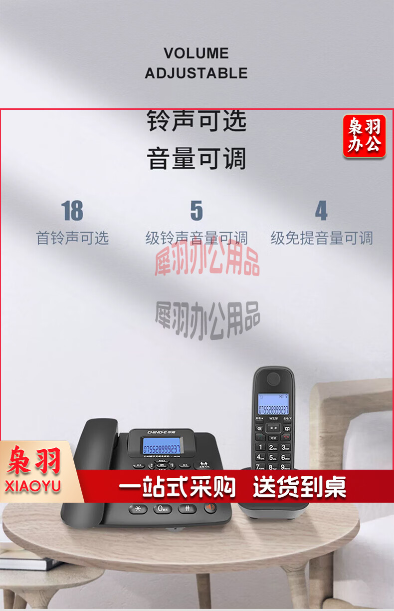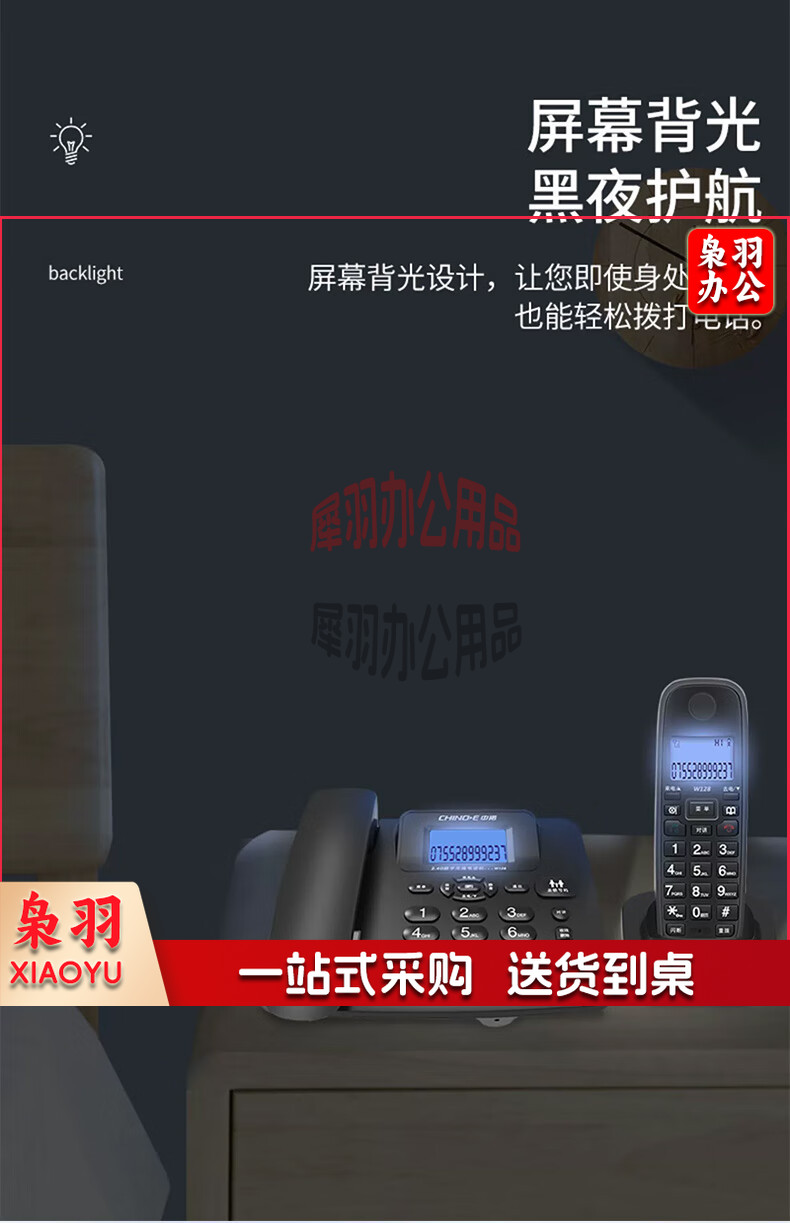 中诺数字无绳电话机无线座机子母机一拖一套装内线通话一键拨号固定电话W128黑色