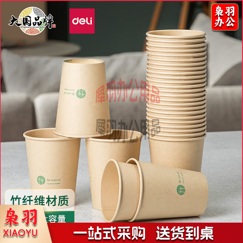 得力(deli)250ml竹纤维一次性杯子 水杯/纸杯 20只装 19204