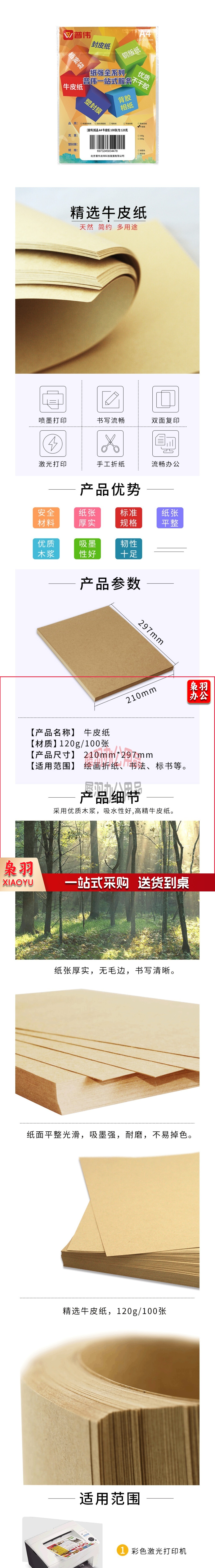 牛皮纸 封皮牛皮纸 a4牛皮纸 牛皮纸120g /100张/包